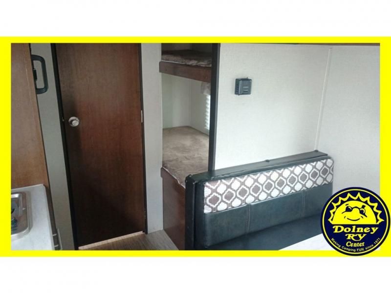 Are you ready for fun and adventure? Look no further than this Navi travel trailer. Pack up for your family of four or five and hit the road. Conveniently towable with a minivan or SUV, you'll be ready in no time without having to purchase an extra vehicle to tow it. After a day of hiking, the kids will love sleeping on the bunk beds, especially with a skylight above the top bunk. Enjoy the LED power lit awning as you make s'mores around the campfire or turn on the LED lit outdoor speakers and have a dance party with friends and family. With enough storage for your valuables and board games, this travel trailer makes camping easy! Come check this one out today and let the adventure begin.