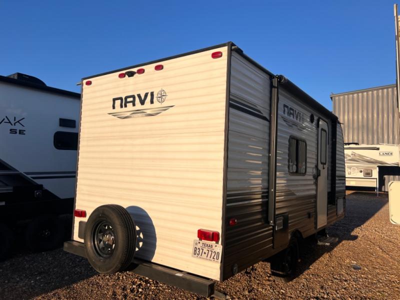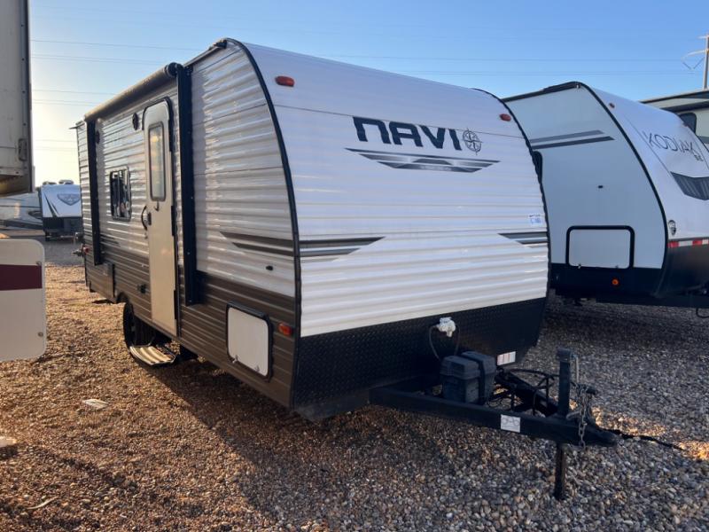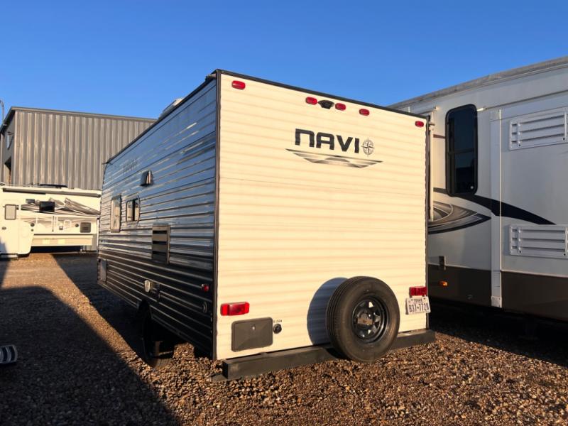 Are you wanting to enjoy a getaway with a couple friends or your spouse? This Navi travel trailer is just what you've been looking for. You'll love spending time outdoors with the LED lit power awning and outside speakers as you sit around the fire pit with your loved ones. Tired from your day of hiking or swimming? Relax on your queen bed with room alongside the bed to hold your valuables. You'll appreciate the exterior shower to clean off after a day of sight seeing with family. Enjoy the kitchen skylight as you cook with the two burner cook top or microwave. Choose this Navi travel trailer today and you'll be glad you did!