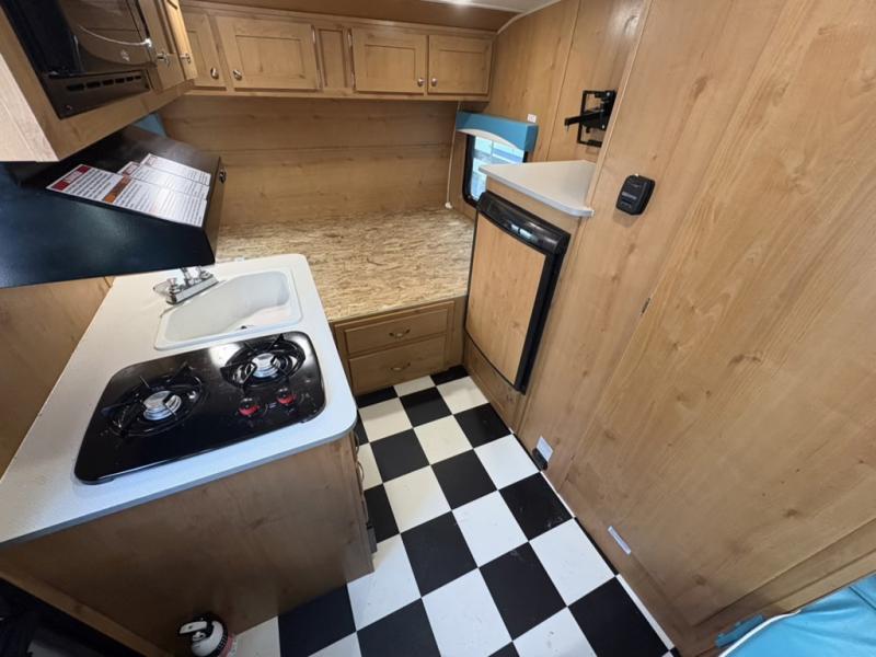 This Retro travel trailer is ideal for a couple or a smaller family of three. You can camp comfortably in this model, and you will be impressed with how easy it is to get up and go. There is plenty of space for eating, relaxing, or sleeping between the booth dinette and queen bed. The wet bath utilizes this unit's space while still giving you plenty of room to move around inside it. Take a look at our features and options to add a little something to your trip!