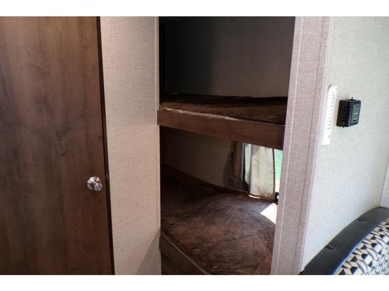 You will love all of the many storage options that have been included in this Shasta travel trailer! The medicine cabinet in the bathroom, the pantry in the kitchen, the overhead cabinets throughout the interior, and the pass-through storage on the exterior make certain that you will have plenty of space to bring along all of your camping gear and travel essentials, and the set of bunk beds, booth dinette, and RV queen bed ensure that you will also have plenty of space to sleep five people during every getaway.
