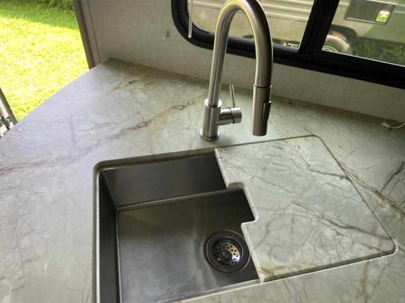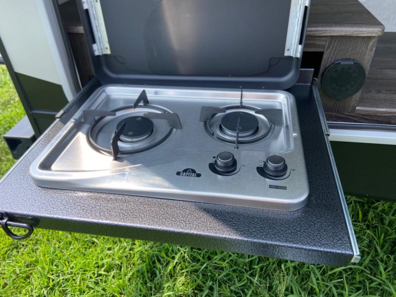 Don't pass up the opportunity to host your family and friends with this Super Lite travel trailer! With two slides, this unit gives you extra space on the interior to enjoy gathering together on the U-shaped dinette or sofa while you wait for dinner to be prepared in the full kitchen. Or if you want to soak up the fresh outdoor air while preparing dinner, you can do so with the outdoor kitchen. After dinner, grab some lawn chairs from the oversized pass-through storage and sit around the campfire.