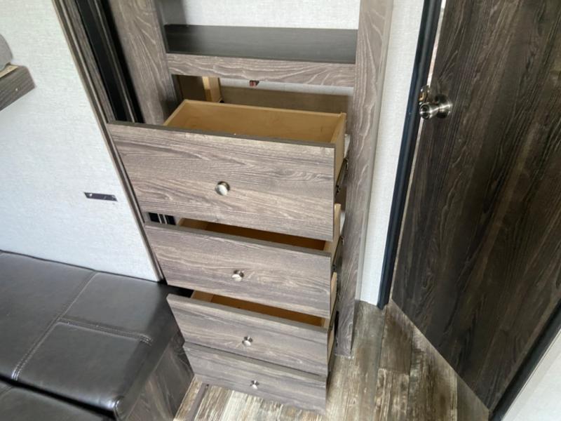 If you are looking to kick your camping lifestyle up a notch, then you need to look at the new Starcraft Super Lite travel trailer! Fiberglass insulation, double-welded aluminum sidewall framing, electric brakes, and a fully walkable Magnum roof are what come together to create a solidly built and expertly crafted foundation for all of your upcoming travels. The optional Customer Convenience Package is what gives the Super Lite its fantastic list of features, like the electric awning with LED lights and speakers, 8 cubic foot refrigerator, and gas/electric DSI water heater. Other additions to that package such as the entrance door window and bathroom skylight will bring in plenty of natural light throughout the day, and the heated/enclosed underbelly will allow you to camp confidently in all sorts of weather conditions.