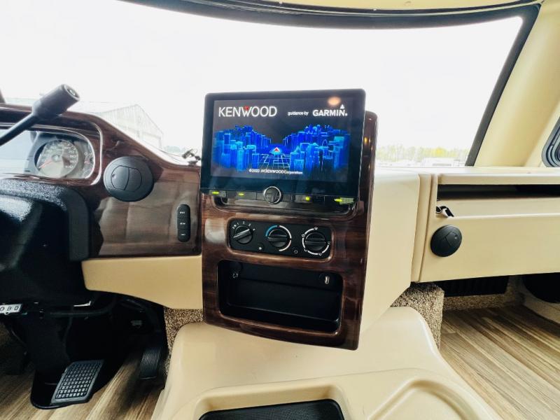 Envision waking up in this A.C.E. Class A gas motorhome at your favorite RV park after a restful night's sleep on a queen-size bed in your own private bedroom while the kids are still sleeping on the furniture and drop-down overhead bunk in the main living and kitchen area. Once everyone is awake, the bunk can be moved to the ceiling with a press of a button. This will add extra seating by turning the captain's chairs to face the rear, and the stow-away coffee table can be put into place to hold your drink. The full-wall slide on the 3TRAX wall slide system provides plenty of room to move about the coach. You will surely enjoy full kitchen and bath amenities providing less stops along the way. The cook might even choose to make a meal at the outdoor kitchen while watching the exterior 32" TV.
