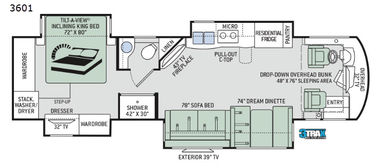 | TV Info | LR 43" LED TV, BR 32" LED TV, Cockpit 32" LED TV, Ext. 39" LED TV |