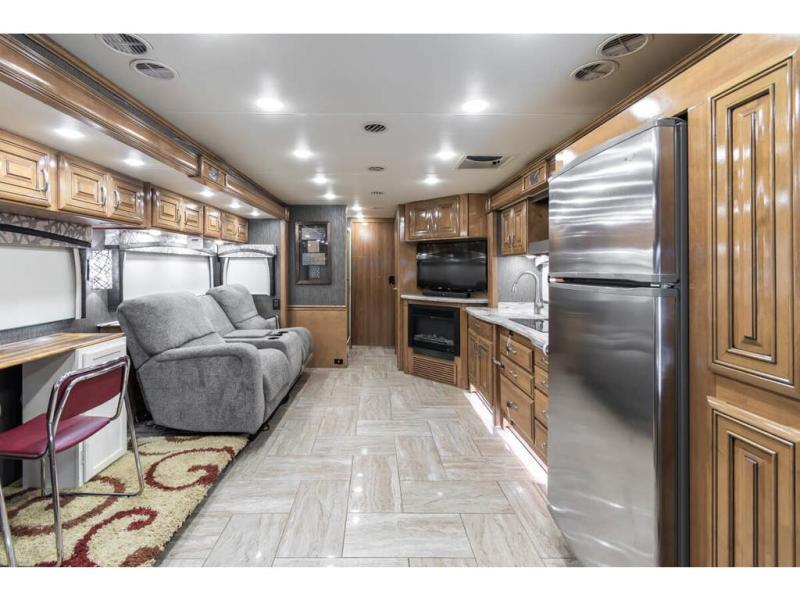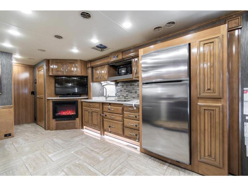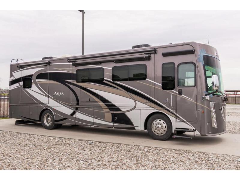 Been daydreaming about traveling to visit family and see new places? Just imagine you and your spouse riding on comfortable leatherette reclining/swivel power adjustable captain's chairs with your grandkids on the sofa bed and dinette thanks to the four additional seatbelts. The furniture will provide extra sleeping space as well, plus the drop-down overhead bunk will be someone's favorite spot when it's time for bed. Once at your destination, everyone can watch the 43" TV while keeping warm by the electric fireplace with remote control. There are full kitchen amenities, plus a split bathroom allowing more than one person to get ready at a time. Don't forget about your own oasis which includes an inclining king size bed for the perfect night's rest, storage for everyone's clothing, and a washer and dryer to keep your clothes clean the whole trip. Step inside this Aria class A diesel coach to find more features to love!
