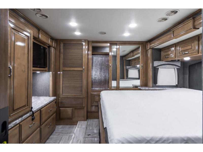 With any Aria class A diesel motorhome by Thor Motor Coach you will be impressed with the 100W solar charging system. The system helps maintain the coach batteries while the Bluetooth App allows for quick control of the charger right from your cell phone or tablet. There is a Onan RV QD 8000 diesel generator as well. You will find a lateral arm awning which allows you more room underneath without having to duck under the arms to get to the entry. Inside you will be able to relax and sleep on the Denver Mattress king size bed with Tilt-A-View inclining bed mechanism while reading a book or watching the 32" LED TV. You can even charge your electronics with the USB ports in the nightstands. Come choose your favorite coach today!