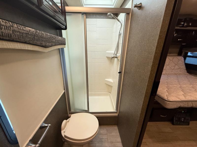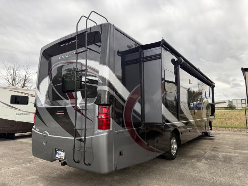 With plenty of kitchen amenities to enjoy such as a 22 cu. ft. stainless steel residential refrigerator, a 30” stainless steel over-the-range convection microwave oven, plus a Dream Dinette booth with cup holders, your next camping trip with this Challenger 37FH class A motor home will be a memorable one! With triple slide outs there is plenty of room to move about in this model. A convenient half bath is located mid-coach and the full bathroom is in the rear. The kids or grandkids will enjoy the drop-down overhead bunk while mom and dad can get a good night's rest on the Tilt-A-View king bed!
