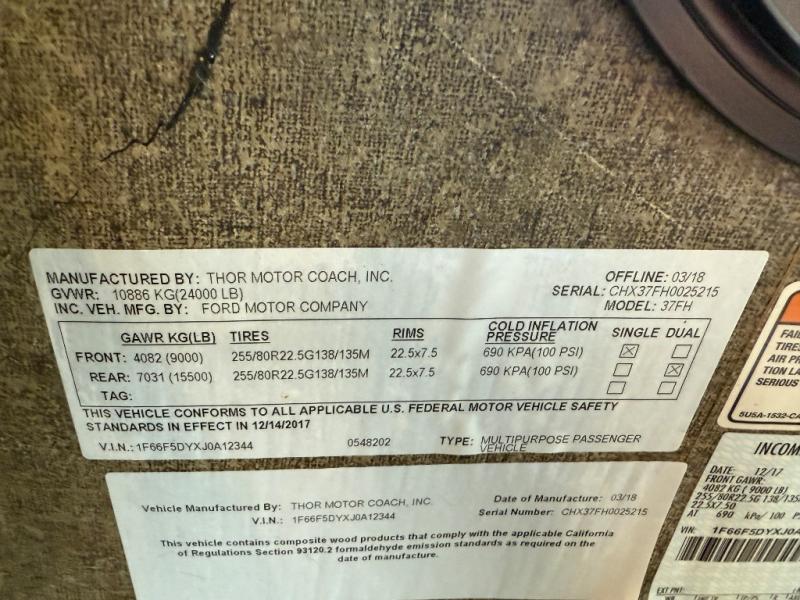 Used 2019 Thor Motor Coach Challenger 37FH Motor Home Class A
