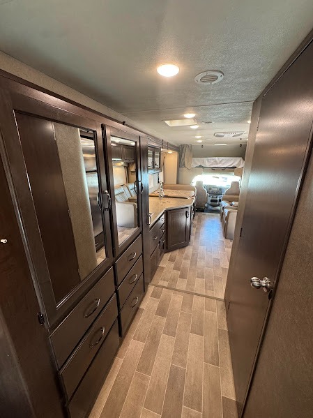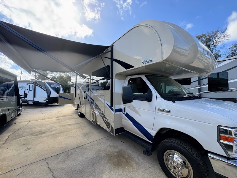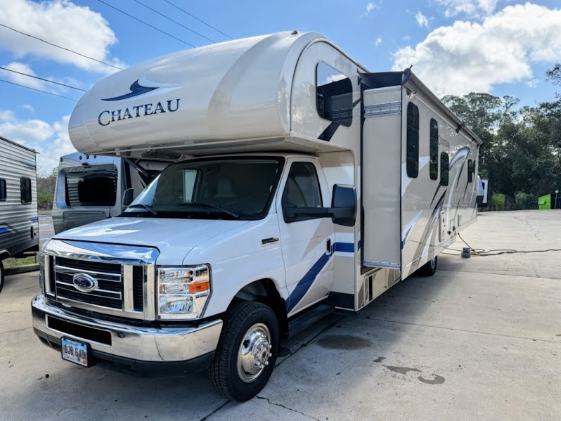 Let your journey begin with a Chateau class C motorhome by Thor Motor Coach. Along the exterior you will find a welded tubular aluminum roof and sidewall cage construction, a one-piece fiberglass front cap, plenty of exterior storage, and a power awning with LED lights. Inside there is an impressive 84" ceiling height, residential vinyl flooring, and high-sheen cabinets with nickel-finish hardware. You will also find that each model has an Onan RV QG 4000 gas generator, an automatic shoreline-to-generator transfer switch, and is pre-wired for solar charging. So what are you waiting for? Come select your Chateau motorhome and see where your next adventure takes you!
