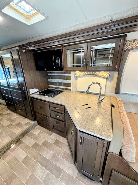Come see just how fun and easy camping can be with this Chateau class C motorhome by Thor Motor Coach. This model features a full-wall slide, and in the kitchen you will find a large single-bowl stainless steel sink, a 16 cu. ft. residential refrigerator, plus a 30" over-the-range convection microwave. In the living area there is a 40" TV for your enjoyment, plus you will find a pop-up countertop outlet and charging center for all of your electronic devices. With the 16' awning and the optional exterior 32" TV, you can even move your party outdoors. This model also comes standard with the Premier Package.