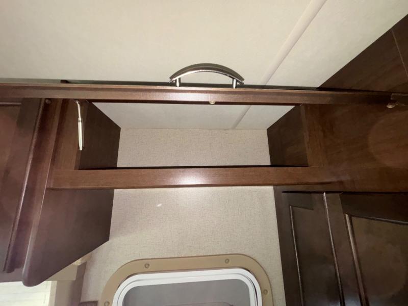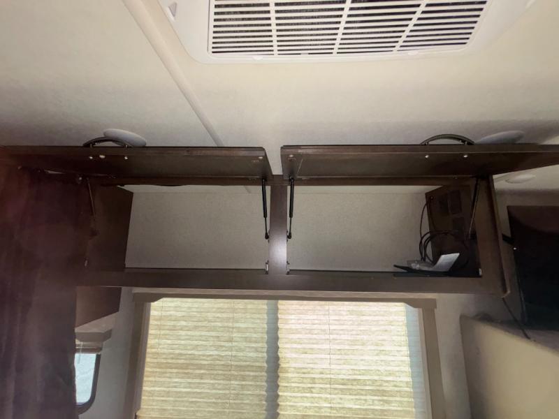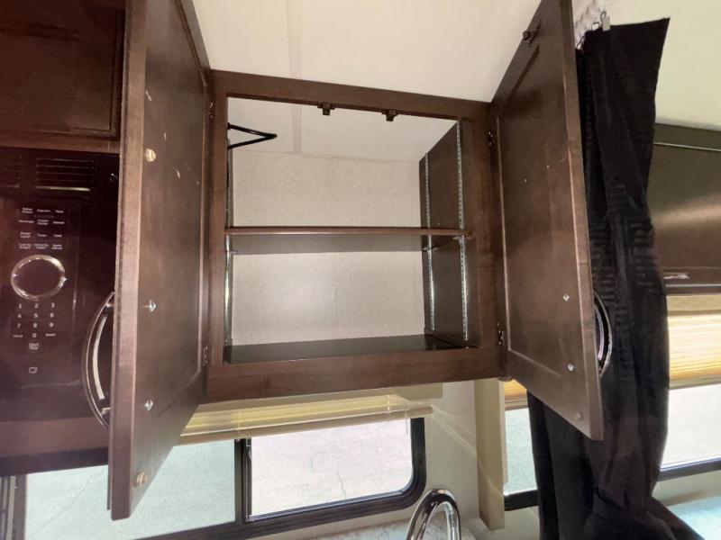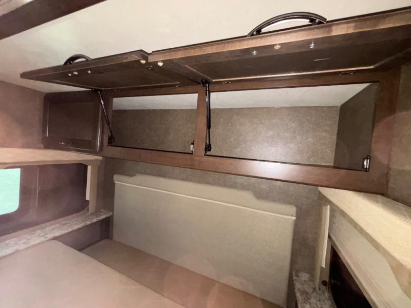 Above the cab, there is a bunk which features 54"x96" of sleeping space, overhead cabinets, and a 40" LED TV with a swivel arm.