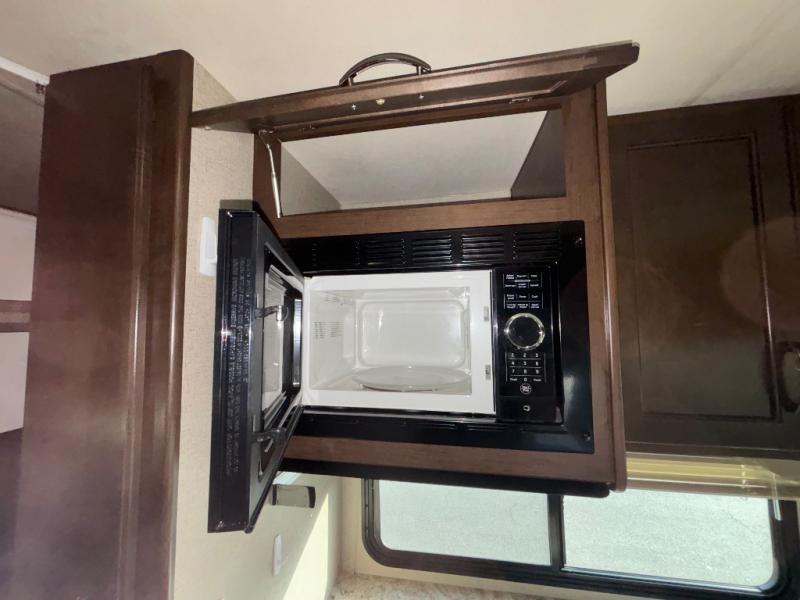 After a day of fun an adventure retreat to the comfort of the rear bedroom. Here you will find a slide out with a queen bed, an overhead cabinet, and nightstands. There is also a privacy curtain which you can easily pull closed at night.