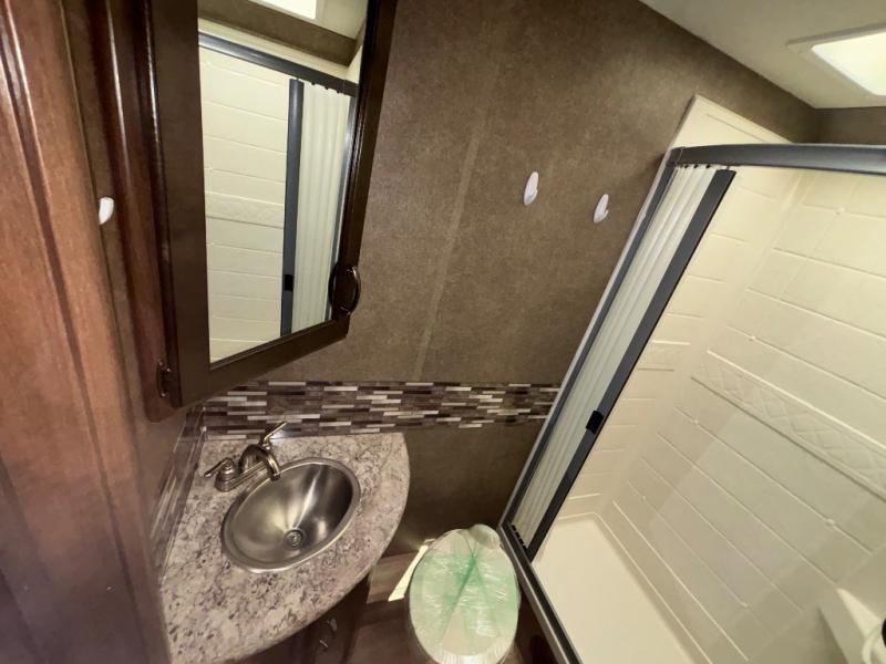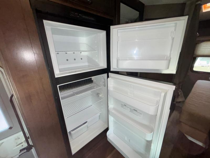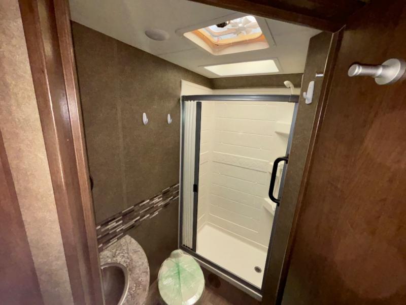 There are plenty of comforts throughout this 26HE Freedom Elite motor home by Thor Motor Coach, such as a single slide out, a full-size bathroom, plus in the front area just past the cab you will find a seating for your whole family at the dinette and sofa.