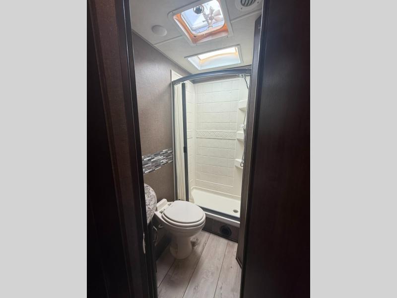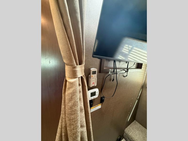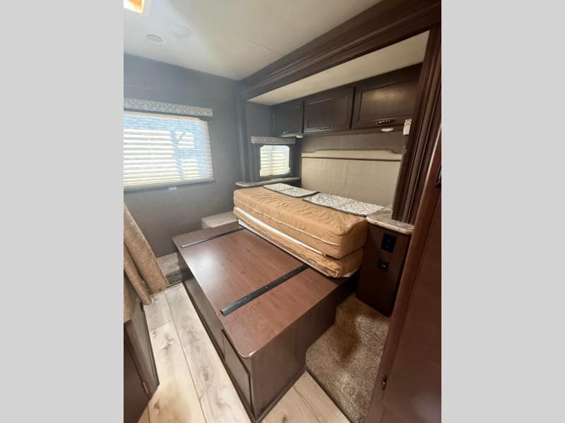 Above the cab, there is a bunk which features 54"x96" of sleeping space, overhead cabinets, and a 40" LED TV with a swivel arm.