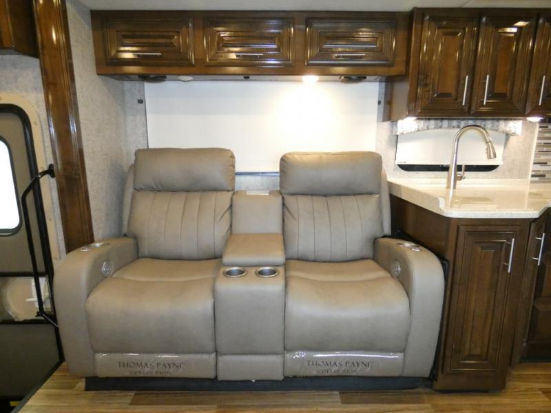 Get ready to take any trip or adventure by the reins when you choose to travel with a Thor Motor Coach Miramar class A gas motorhome! Along the exterior there is a premium one-piece TPO roof and invisible front paint protection on the full body paint which will help your motorhome last for years! The basement pass-through storage features plenty of room for all of your 'extra' camping gear. Inside you will find residential vinyl flooring as well as high-gloss glazed cabinetry. Each kitchen has an 11 cu. ft. residential refrigerator with an ice maker, a two-burner induction cooktop, and a 30" stainless steel over-the-range convection microwave. The WIFI Ranger/WIFI Extender allows you to easily stay connected on your electronic devices. What are you waiting for? Come choose your Miramar today!