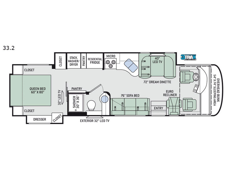 | TV Info | LR 40" LED, BR 32" LED, Exterior 39" LED |