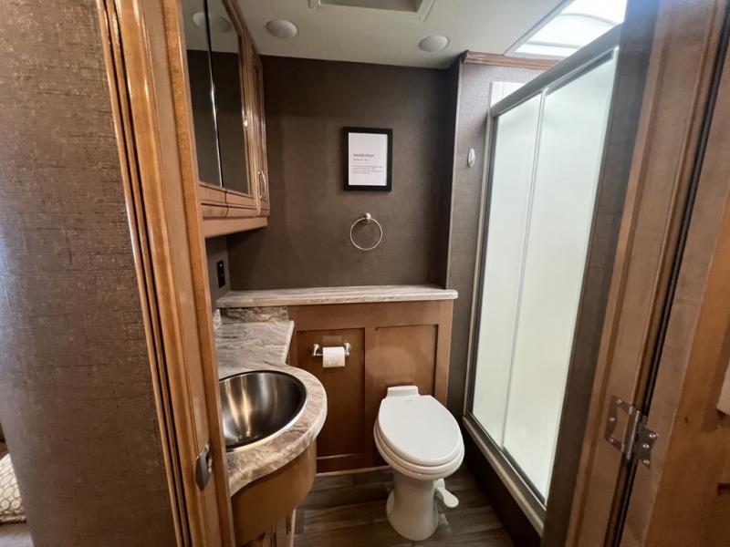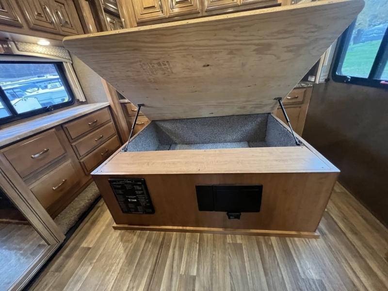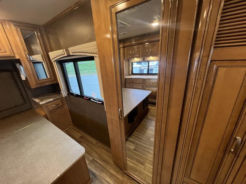 No matter where you love to travel, this Palazzo Class A diesel motorhome will be just the unit you need to get you there. With its many closets and pantries, you will always find plenty of space to store your camping essentials as you tour the countryside, and the stackable washer/dryer will be helpful for keeping all of your garments clean so that you can stay on the road for as long as you like. With this RV, you never have to worry about who has joined you on your travels because it can sleep seven people, and with the inclusion of the queen-size bed in the private bedroom, you will always have a chance to grab some peace and quiet whenever you need it.