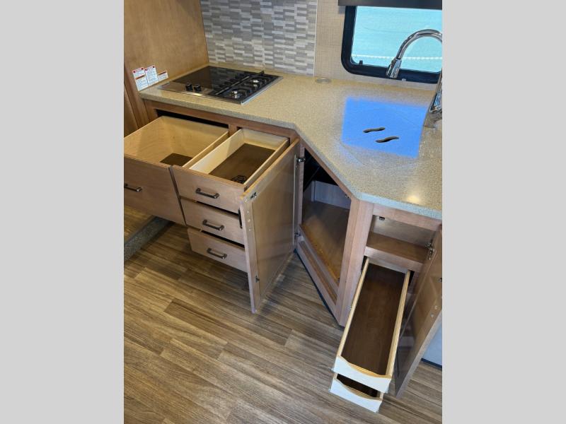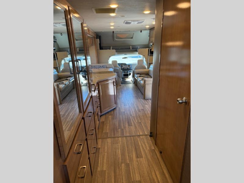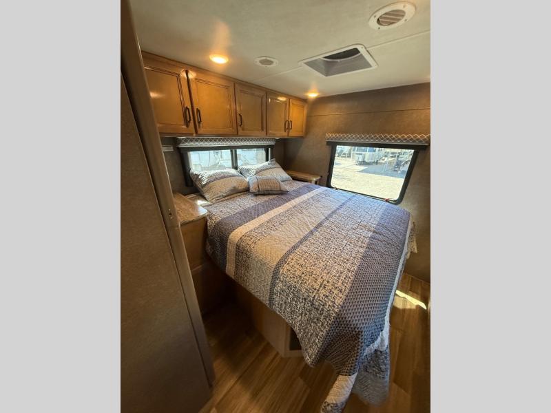 Whatever your family size or travel needs, it's easy to decide which floorplan is right for you with one of these Thor Motor Coach Quantum class C motorhome. These models provide a slick one-piece fiberglass front cap, a Ford E-Series or Chevrolet Chassis, and each motorhome includes an exterior MEGA-Storage compartment for all your camping gear. Some of the comforts you will enjoy inside are residential vinyl flooring, pressed laminate countertops, a Denver Mattress, and a shower skylight just to name a few. When comparing all of the Sprinter Class C brands, it will be easy to see that nothing else quite measures up in comfort, quality, and value to the Quantum! Choose yours today!