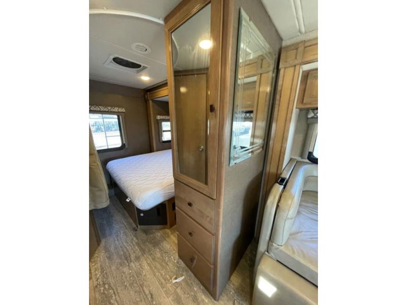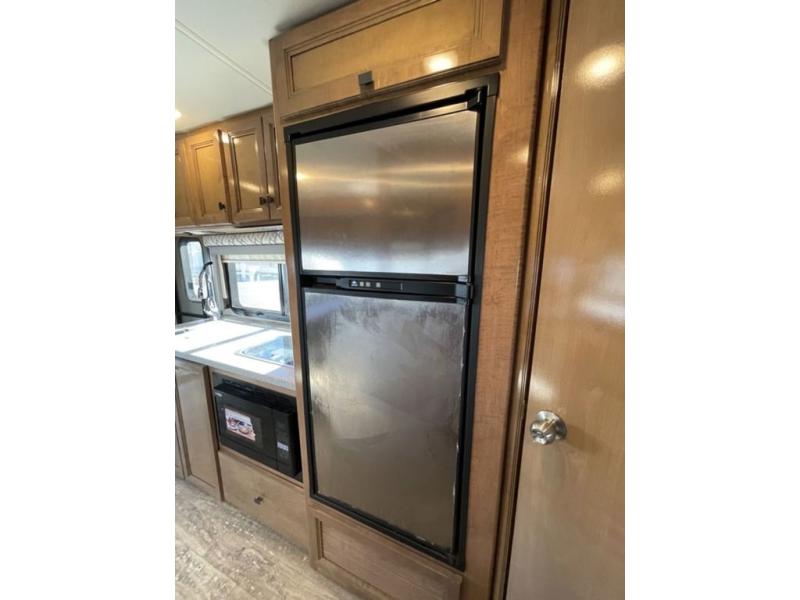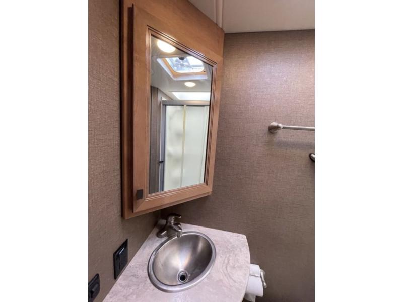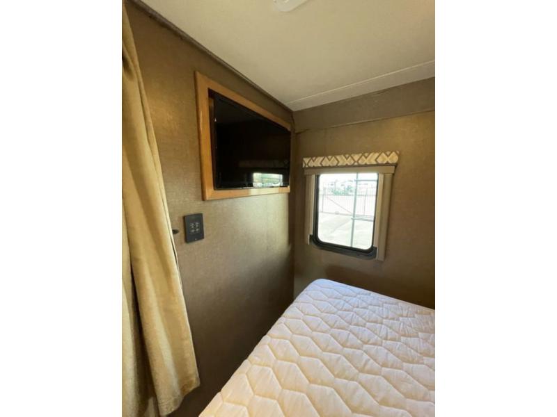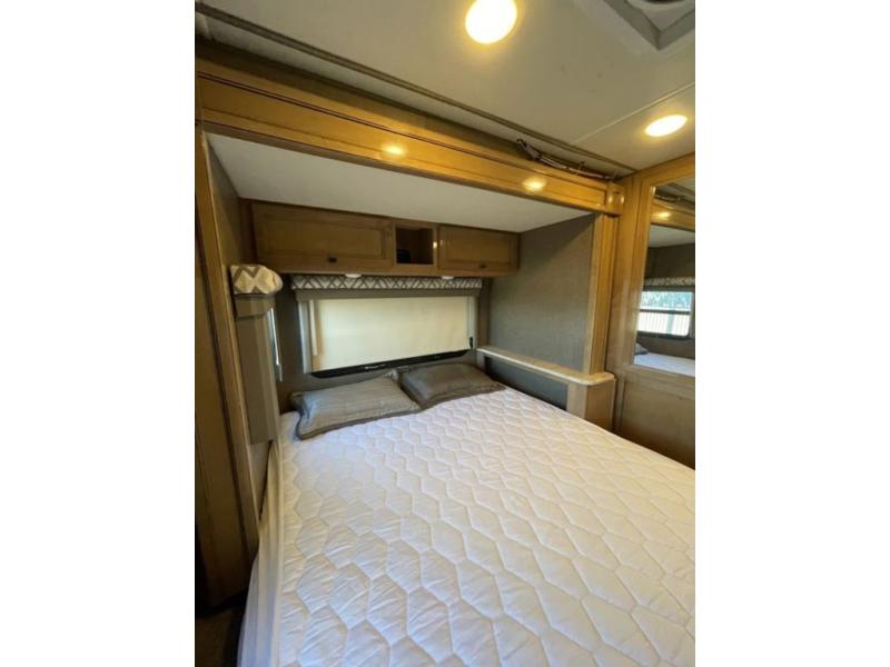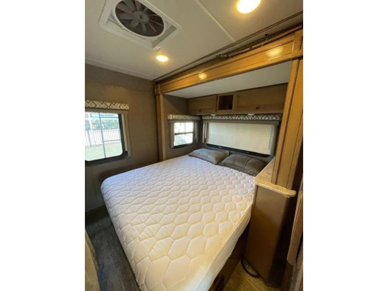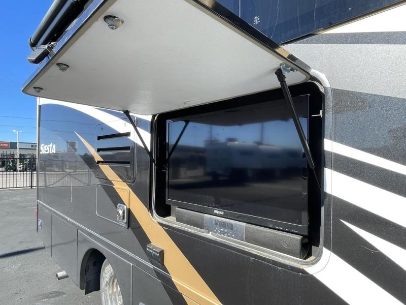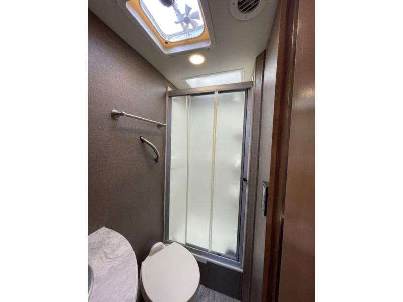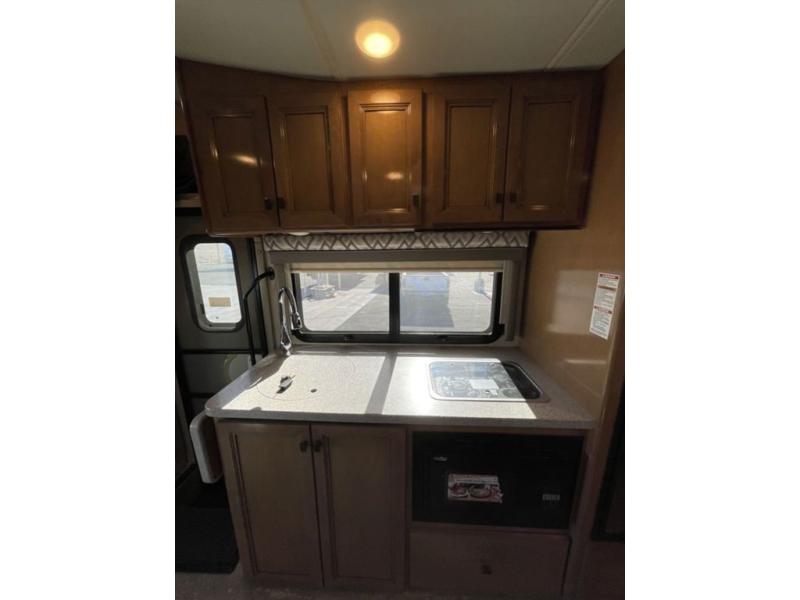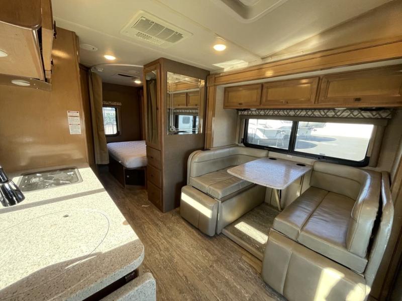 Just imagine you and your spouse and maybe your kids traveling to tournaments, festivals, or across the country in this motor home. The cook will enjoy making meals in the kitchen with a convection microwave and two burner gas cooktop, plus the flip-up countertop offers more space to dry dishes. The booth dinette with footrests and swivel captain's chairs offer a comfortable living and dining area. At nighttime the children or overnight guests can sleep on the cab-over bunk and on the folded down dinette You will have your own semi-private bedroom with a queen bed and privacy curtain when you need your own space. You even have a full bathroom to stay clean after hiking, biking and sitting by the campfire. There are two TVs inside for entertainment, and an exterior TV when relaxing outside under the awning. Take a look today!