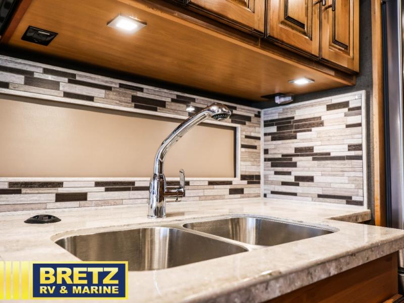 With any Allegro RED Class A diesel motorhome from Tiffin Motorhomes, you will enjoy luxurious details all throughout. You will find that the Ultra Leather furniture offers contemporary finishes and comfort, and the ceramic tile flooring will deliver an elegant base to this fabulous coach. You will enjoy having an 8.0 kw Onan generator to provide a back-up plan whenever needed, and the Extraordinaire AC System that is exclusive to Tiffin delivers quiet climate control technology.