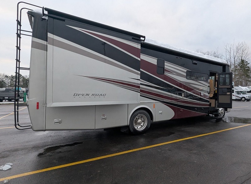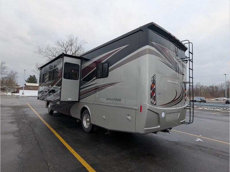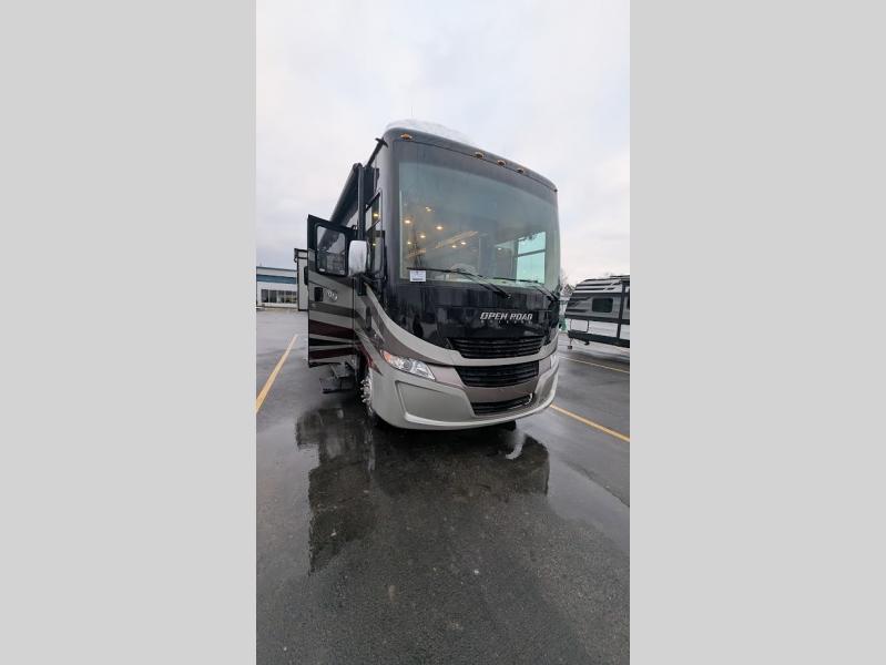 This Open Road Allegro Class A gas motorhome is a legendary RV built for the ages. From its spacious living area made possible by two slides, to its fully loaded master bedroom with a king bed slide, a flat panel TV, and two full walls of storage compartments, you won't be able to ignore the quality that has been built into this motorhome. Even the cab area is decked out with ultraleather power seating, an overhead flat panel TV, and a back-up camera with a color monitor.