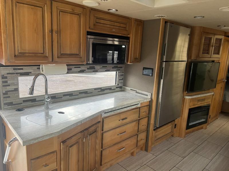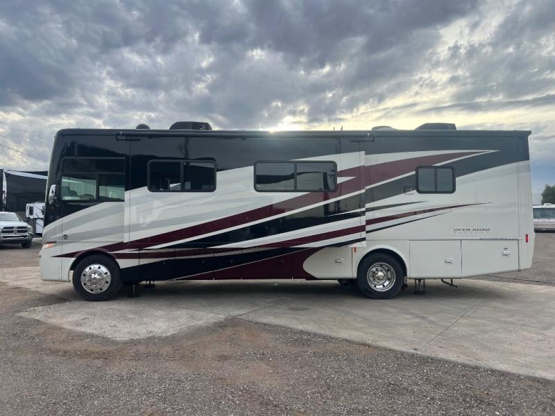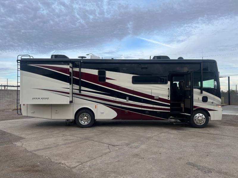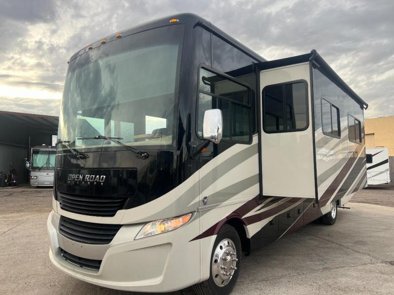 This Open Road Allegro Class A gas motorhome is a legendary RV built for the ages. From its spacious living area made possible by two slides, to its fully loaded master bedroom with a king bed slide, a flat panel TV, and two full walls of storage compartments, you won't be able to ignore the quality that has been built into this motorhome. Even the cab area is decked out with ultraleather power seating, an overhead flat panel TV, and a back-up camera with a color monitor.