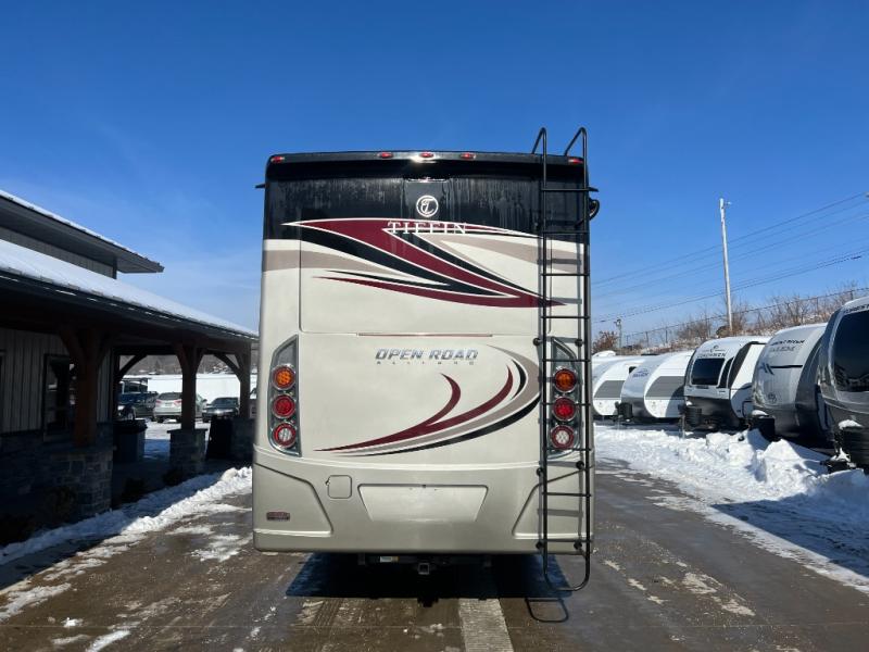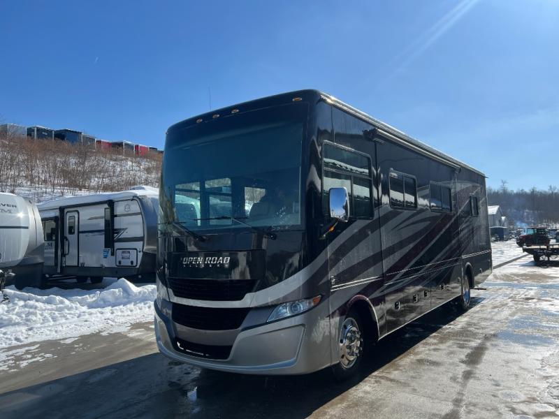 This Open Road Allegro Class A gas motorhome is a legendary RV built for the ages. From its spacious living area made possible by two slides, to its fully loaded master bedroom with a king bed slide, a flat panel TV, and two full walls of storage compartments, you won't be able to ignore the quality that has been built into this motorhome. Even the cab area is decked out with ultraleather power seating, an overhead flat panel TV, and a back-up camera with a color monitor.