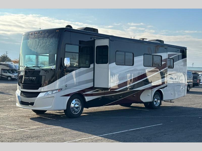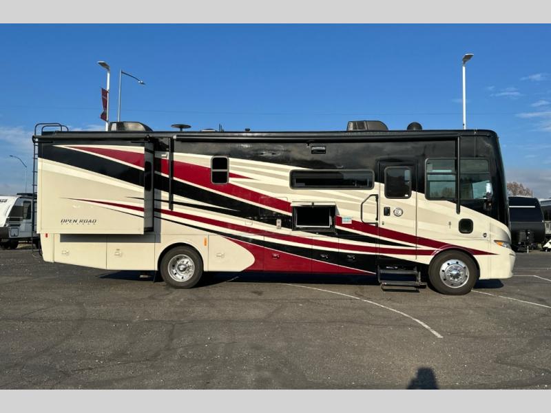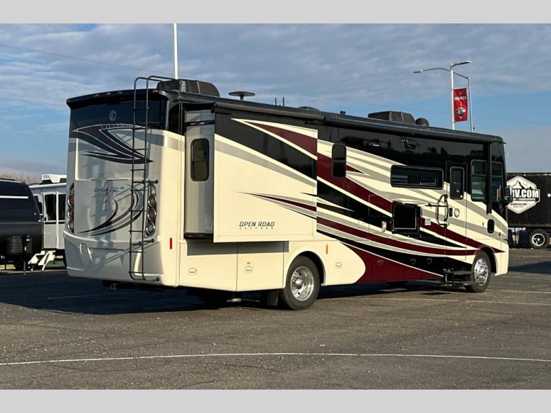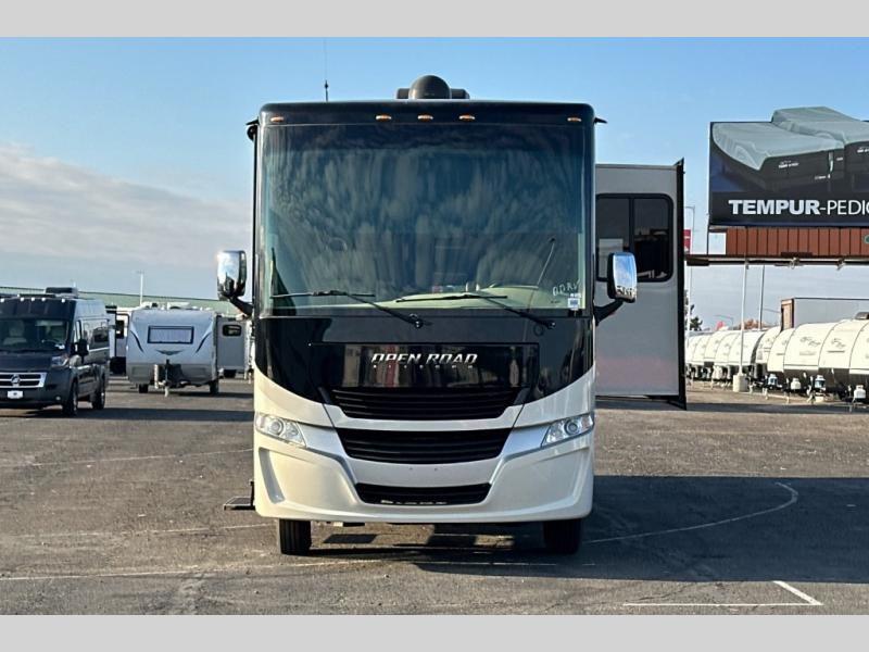 This Open Road Allegro Class A gas motorhome is a legendary RV built for the ages. From its spacious living area made possible by two slides, to its fully loaded master bedroom with a king bed slide, a flat panel TV, and two full walls of storage compartments, you won't be able to ignore the quality that has been built into this motorhome. Even the cab area is decked out with ultraleather power seating, an overhead flat panel TV, and a back-up camera with a color monitor.