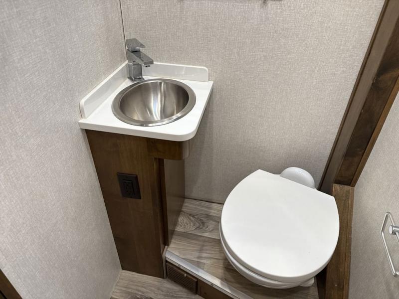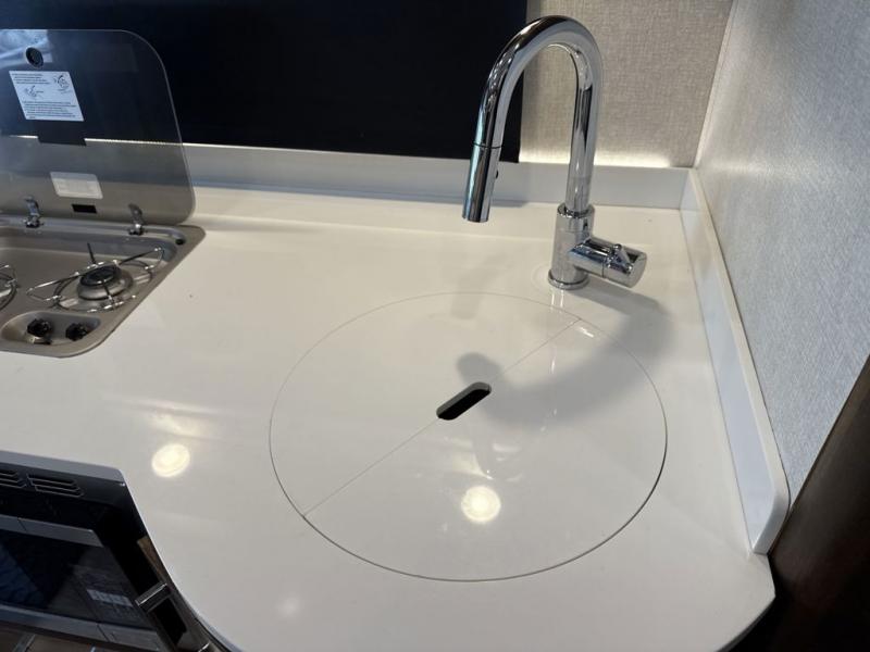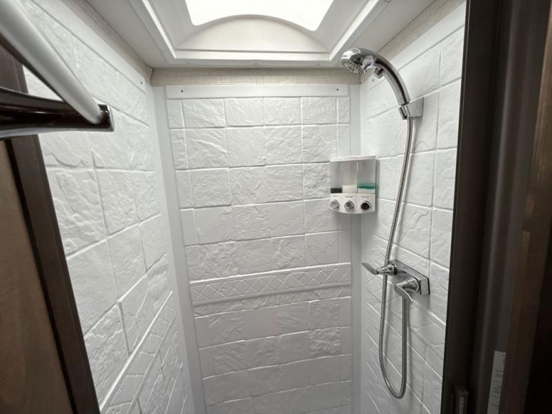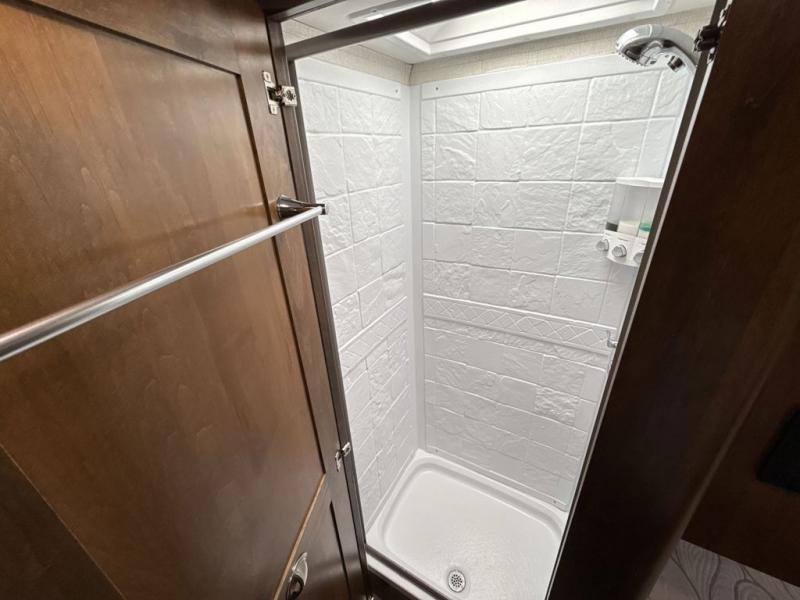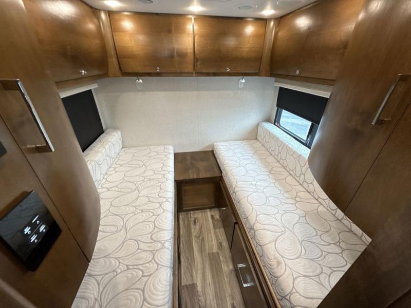 This Wayfarer 24 TW class C diesel motorhome provides access to the shower separately from the private toilet and vanity with sink which is quite convenient when you are in a hurry to head into town. The dual opposing twin beds convert to a king size bed if you need more sleeping space on any given night. The loft bed over the cab and sofa sleeper provide additional sleeping space for your kids or overnight guests. You will find four seatbelts, a spice rack and designer faucet in the kitchen, plus many more features. The 14' Carefree awning will provide an outdoor living space everyone can appreciate!