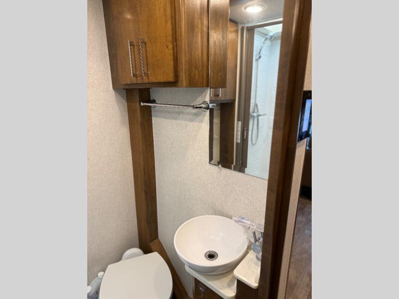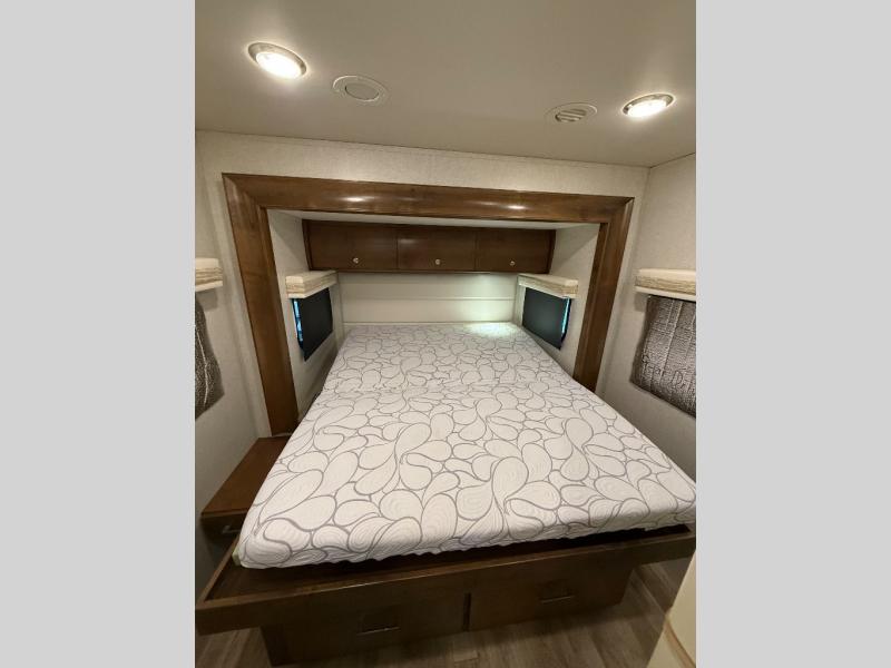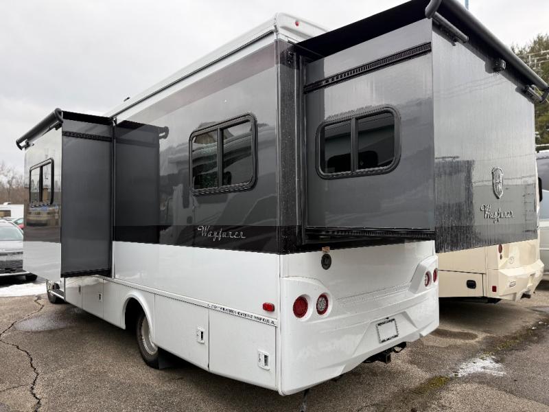 Comfortable driving and living accommodations are found in this Wayfarer 25 QW class C diesel motorhome. You will also find many luxuries as well. Just imagine two slides, plenty of floor space in the living area and kitchen, plus a bedroom that includes a queen bed. You will surely want to dine in and play games with your friends at the booth dinette which includes storage drawers below the seats to stow away items when you have guests. There is a loft bed over the cab and the dinette can be folded down for the kids or grandkids. Store your canned goods in the slide out pantry, and your valuables can go in the overhead compartments. The full bath allows you to stay clean and ready to go into town, on another hike, or to sleep in your own queen bed.