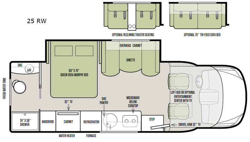 Tiffin Motorhomes Wayfarer class C diesel coach 25 RW highlights: