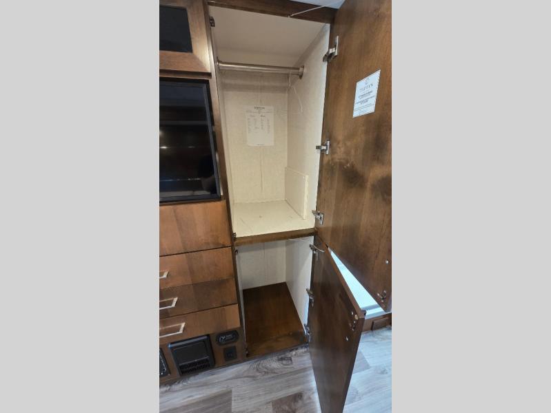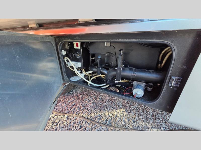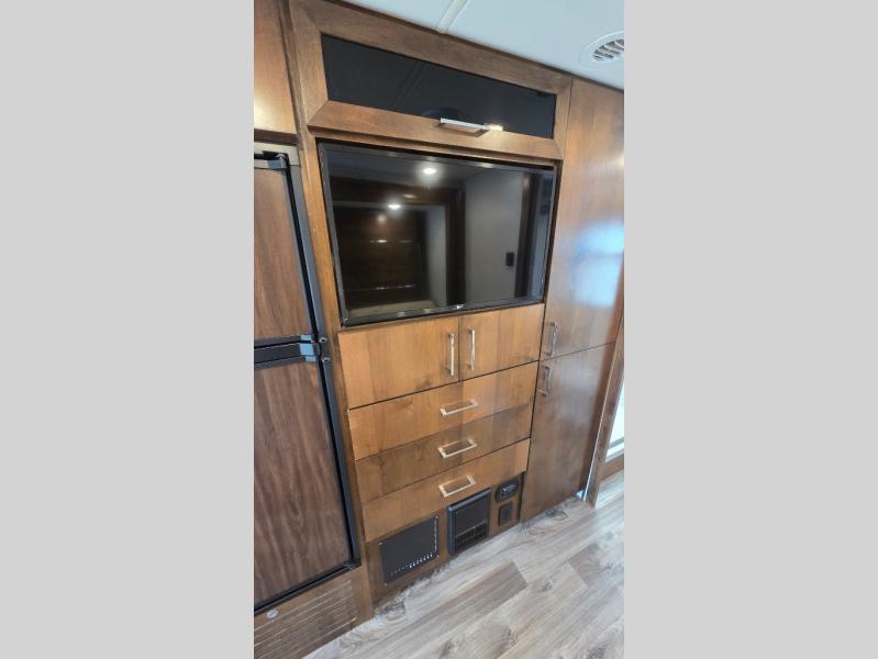 You will love the versatility that this Wayfarer diesel coach allows your family when traveling. With a queen Murphy bed/sofa you can easily make it fit your needs all while on the road. The large slide along the driver's side allows for plenty of space in this 7-1/2 foot wide model. No worries about when or where you will stop on any journey since you have all the amenities you need for any place you decide to make home right at your fingertips. A complete kitchen, including a two burner cooktop and microwave oven, make it easy to create meals and snacks on the go. The rear full bath is another great amenity featuring a 24" x 36" shower with skylight. For your little ones, you can easily use the booth dinette or choose the optional 70" tri-fold sofa/bed in its place, or there is the over the cab loft bed that might be fun as well. In the loft area, you will find a swivel arm 32" TV that can easily be viewed throughout the coach. Another 32" TV in front the Murphy bed allows you to easily watch a move while it is set up in the sofa position, or while in bed.