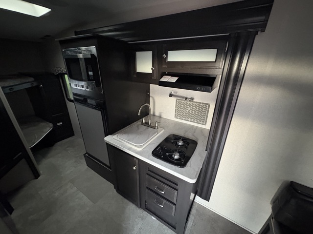 Looking for the ideal travel trailer for your family of four to six? This Sonic Lite might just be the perfect fit. You will find 44" x 74 1/2" bunk beds in the rear, plus a U-shaped dinette near the entry offers extra sleeping space as well. The cook can make meals in the full kitchen which also includes a convection microwave. If you have been wanting a tub to be able to wash the little ones, the full bathroom has you covered. You will find storage inside for your dry goods and clothing, and outside for your larger items either through the Pack-N-Play door in the rear, or pass-through compartment up front. Load the family in your tow vehicle and head out today!