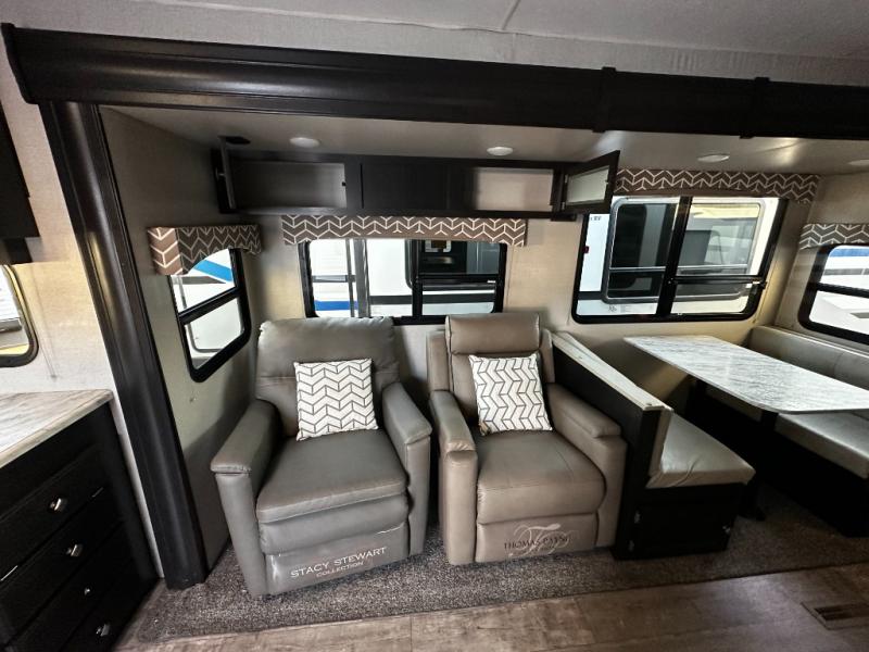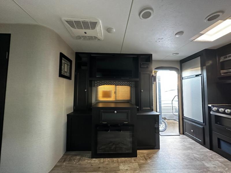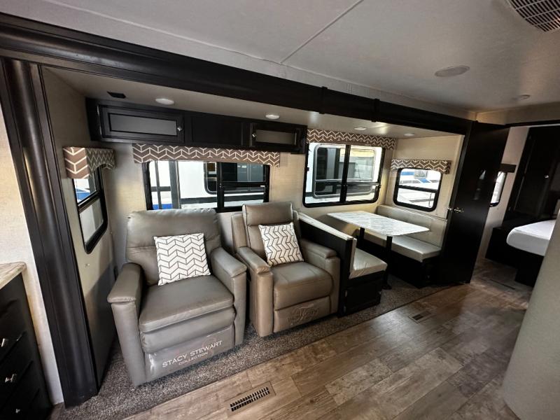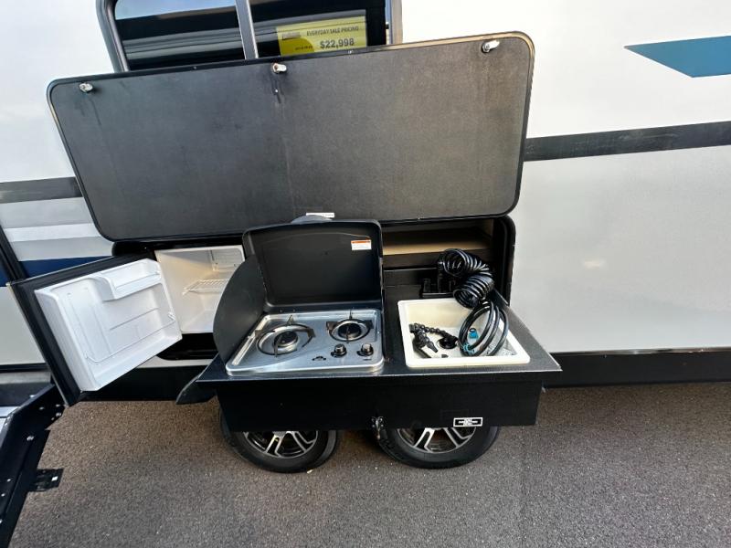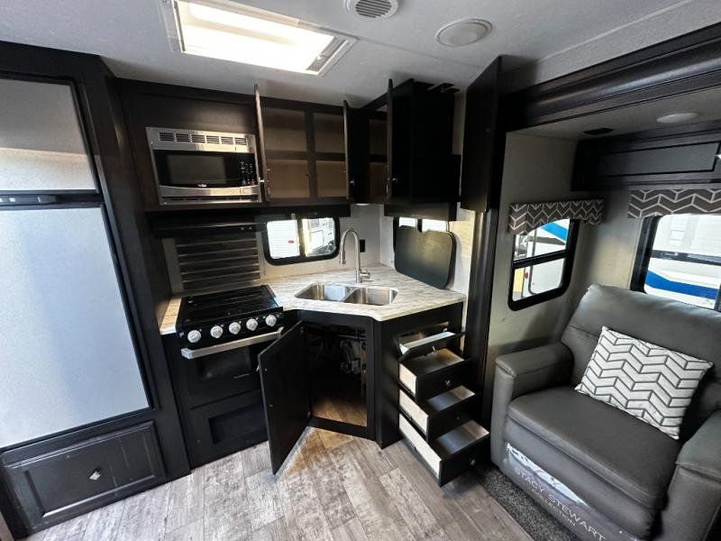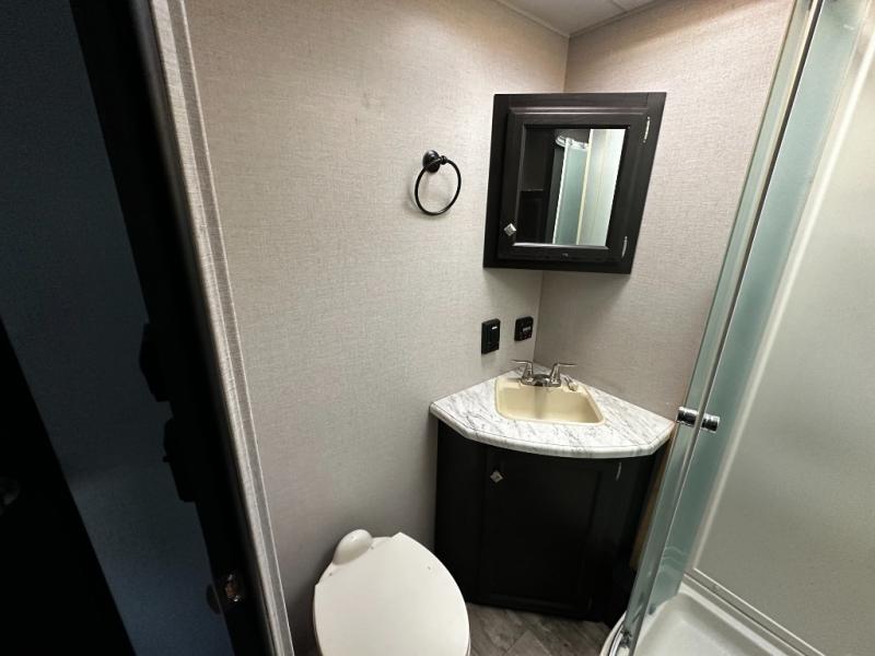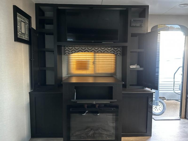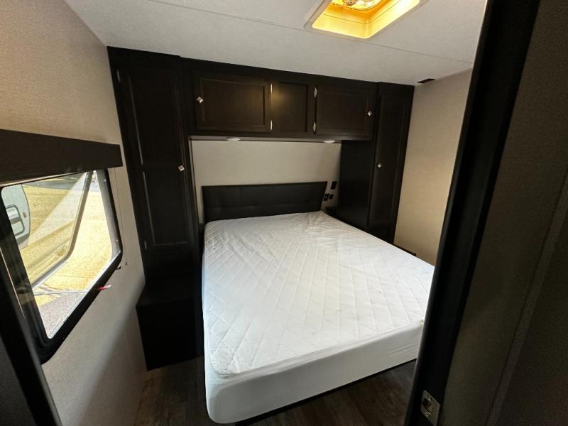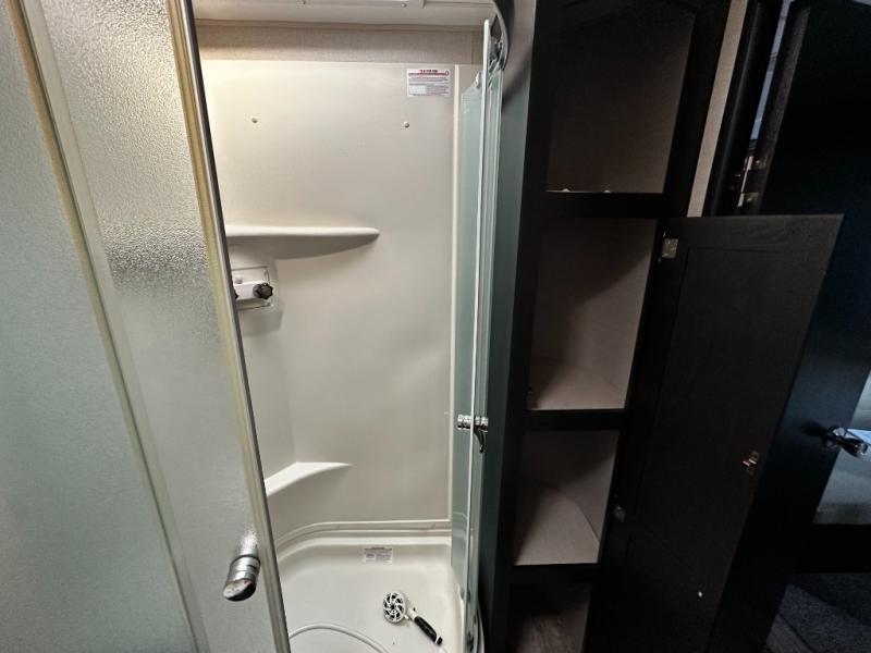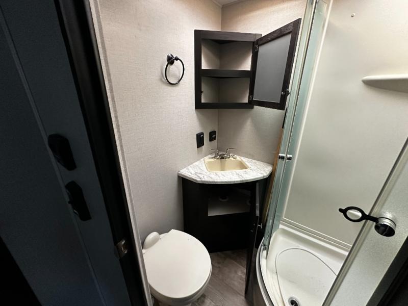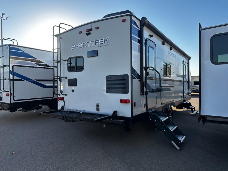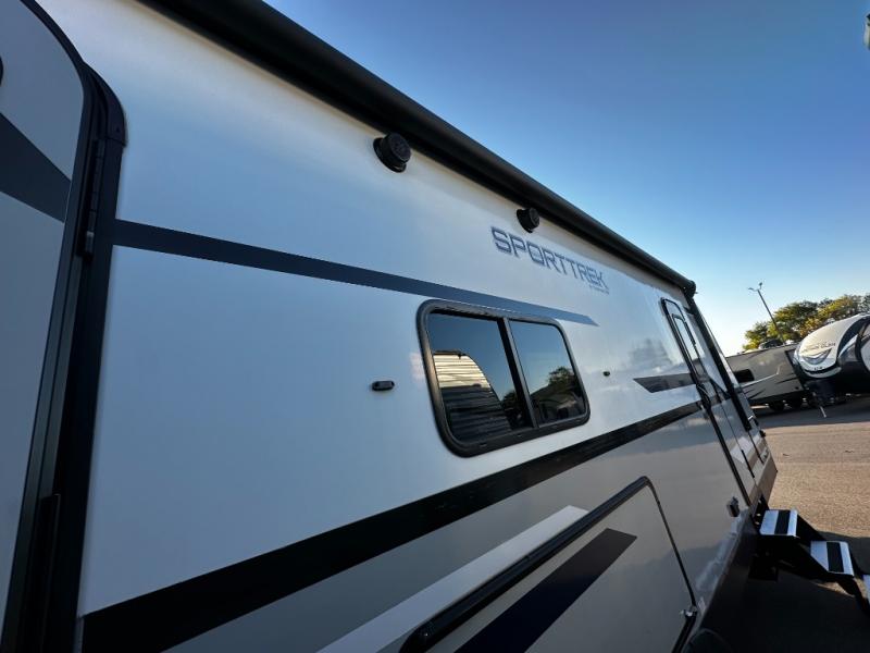 Imagine you, your spouse, and your pet traveling to different campgrounds to see family, friends, and new scenery. This SportTrek travel trailer provides plenty of storage throughout including the exterior pass-through compartment allowing you to carry extra outdoor gear. You even have the choice of cooking and dining inside with full kitchen amenities or outside where the action is. The 34" radius shower gives you plenty of space to get cleaned up before relaxing and visiting with everyone, plus you can sleep on a queen Sleep Tight mattress in the private bedroom with the second entry door into the trailer.