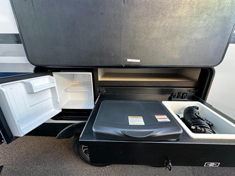 With any SportTrek travel trailer by Venture RV, you will appreciate the NXG huck-bolt frame because it provides a strong and lightweight foundation. Once at your destination, the exclusive-to-Venture RV Level Mate PRO offers leveling simplified, on the first try! Inside you will find plenty comforts of home, plus a handy shelf next to the bed with a USB port for charging mobile devices and space to fit most CPAP breathing machines. You will also appreciate the Safe-Tek hidden storage box with a charging center.