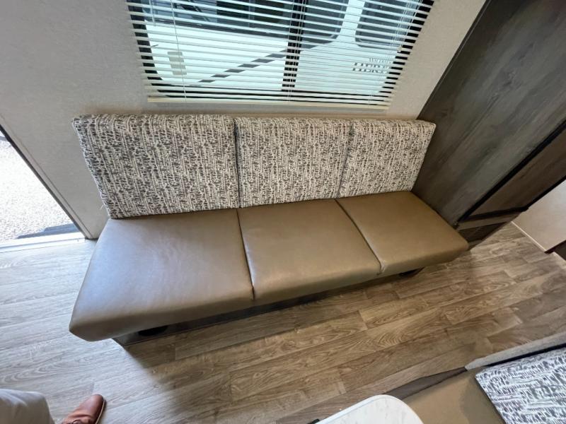 Stop missing out on fun adventures with the family and start experiencing nature at its best with this Saga travel trailer! From the two entry doors that enable a smooth flow of traffic in and out of this unit, to the queen-size bed, booth dinette, and sofa that gives this trailer its capacity to sleep five people each night, this unit will give you a comfortable and accessible living space to call home while you camp out at your favorite scenic destination.