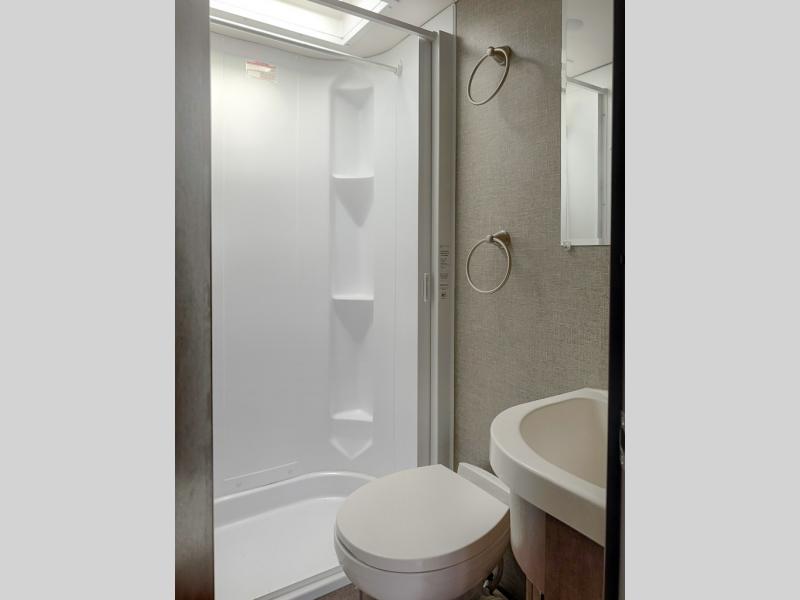 From its stylish amenities to its modern conveniences, this Fuse Class C diesel motorhome is just what you need for a weekend away or months on the road. Because of its full bathroom with a 26" x 35" shower and skylight and its full kitchen with a three-burner range top and double-door refrigerator with freezer, this unit allows you to travel the way you want without having to plan your trips around rest stops and dining locations. You will also enjoy having your own comfortable place to sleep each night with the full-size foam mattress and headboard.