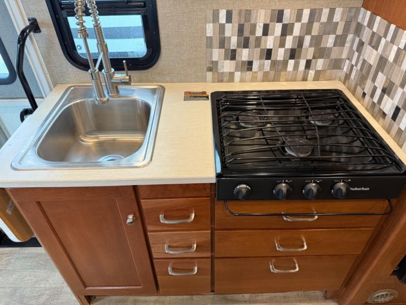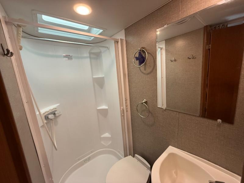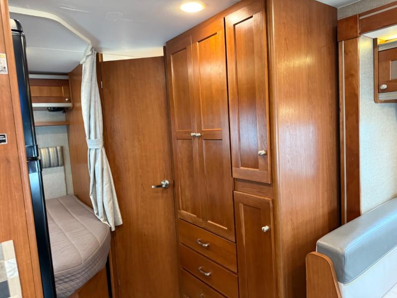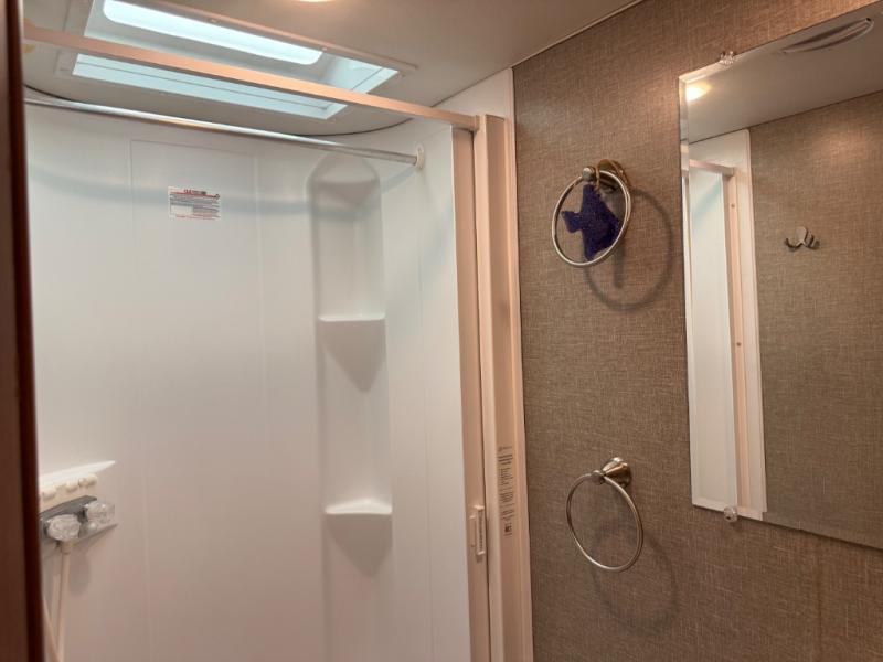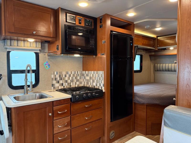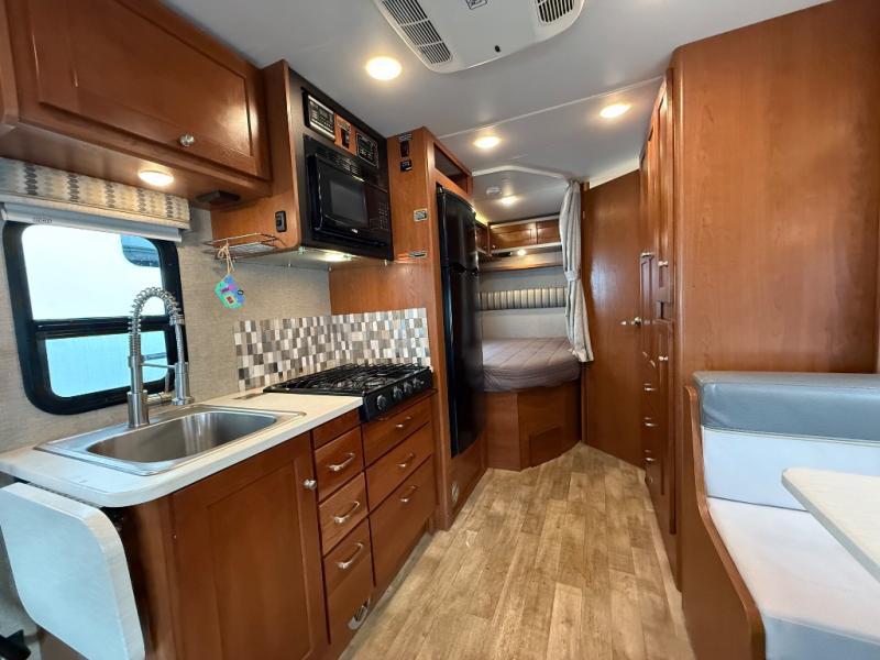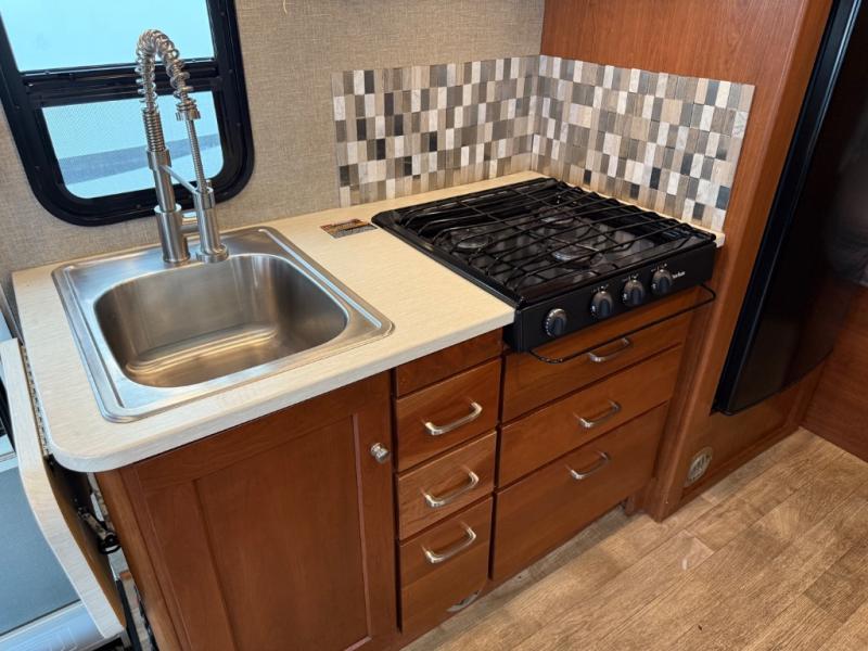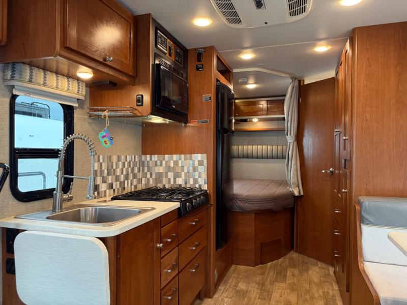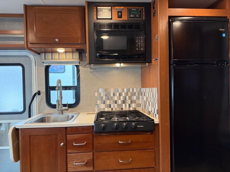 From its stylish amenities to its modern conveniences, this Fuse Class C diesel motorhome is just what you need for a weekend away or months on the road. Because of its full bathroom with a 26" x 35" shower and skylight and its full kitchen with a three-burner range top and double-door refrigerator with freezer, this unit allows you to travel the way you want without having to plan your trips around rest stops and dining locations. You will also enjoy having your own comfortable place to sleep each night with the full-size foam mattress and headboard.
