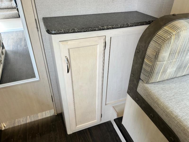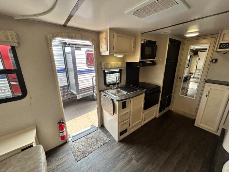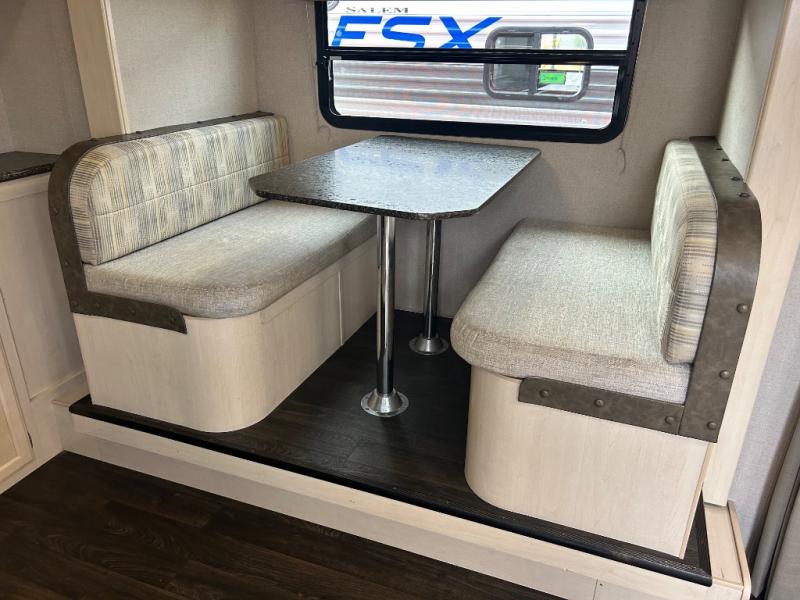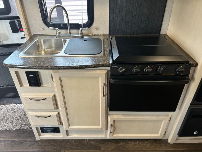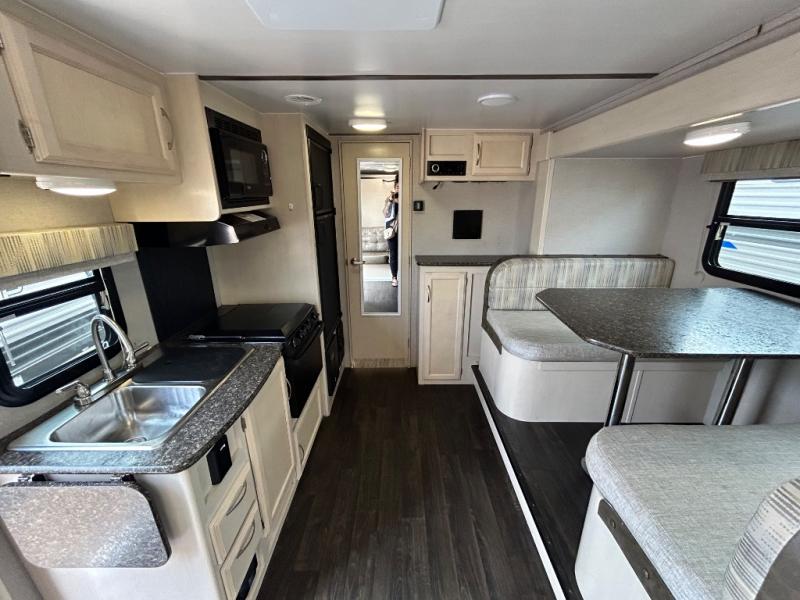 This unique floorplan provides a front living area during the daytime, and a semi-private bedroom at night. Inside this Micro Minnie 2108DS travel trailer you can relax on a sofa, and sleep on a Murphy bed. The kids or overnight guests can play games at the slide out dinette after everyone eats dinner, and before bedtime. You have full kitchen amenities as well as a full bathroom allowing everyone an added convenience of not walking to the public facilitates, especially at night. If you are a couple or smaller family, this model will fit perfectly into your life style.