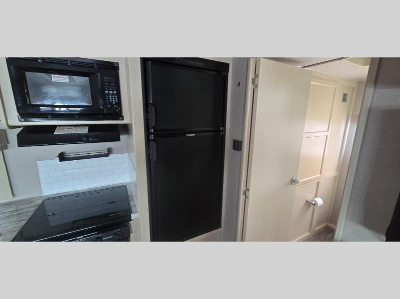 In any Minnie travel trailer by Winnebago Industries Towables, you will find increased living space with a fantastic single slide. On the inside, you will find each Minnie trailer to be full of life with light-colored interiors along with efficient LED lighting, and the interior will feel even more alluring during those hot summer days because of the 13,500 BTU air conditioner. You will also be the talk of the campground with your Minnie travel trailer because it comes available in six eye-catching colors for its exterior Noble Classic high-gloss fiberglass sidewalls.