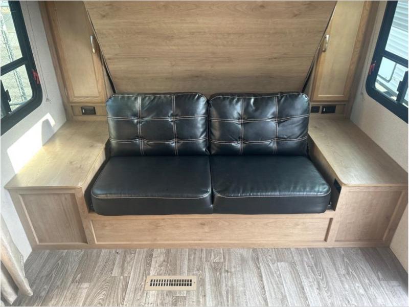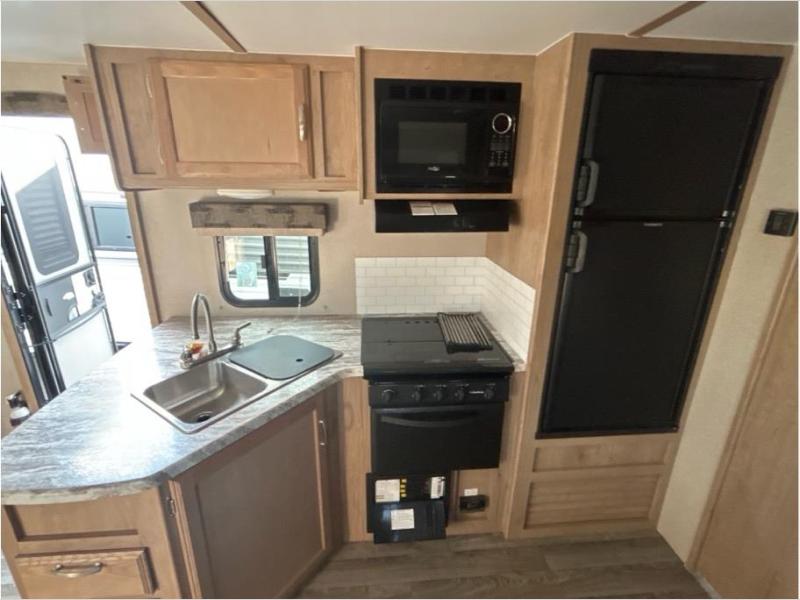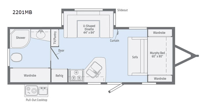 In any Minnie travel trailer by Winnebago Industries Towables, you will find increased living space with a fantastic single slide. On the inside, you will find each Minnie trailer to be full of life with light-colored interiors along with efficient LED lighting, and the interior will feel even more alluring during those hot summer days because of the 13,500 BTU air conditioner. You will also be the talk of the campground with your Minnie travel trailer because it comes available in six eye-catching colors for its exterior Noble Classic high-gloss fiberglass sidewalls.