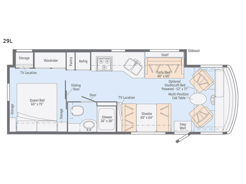 | TV Info | Coach 39" HDTV, BR 32" HDTV, Ext. HDTV |