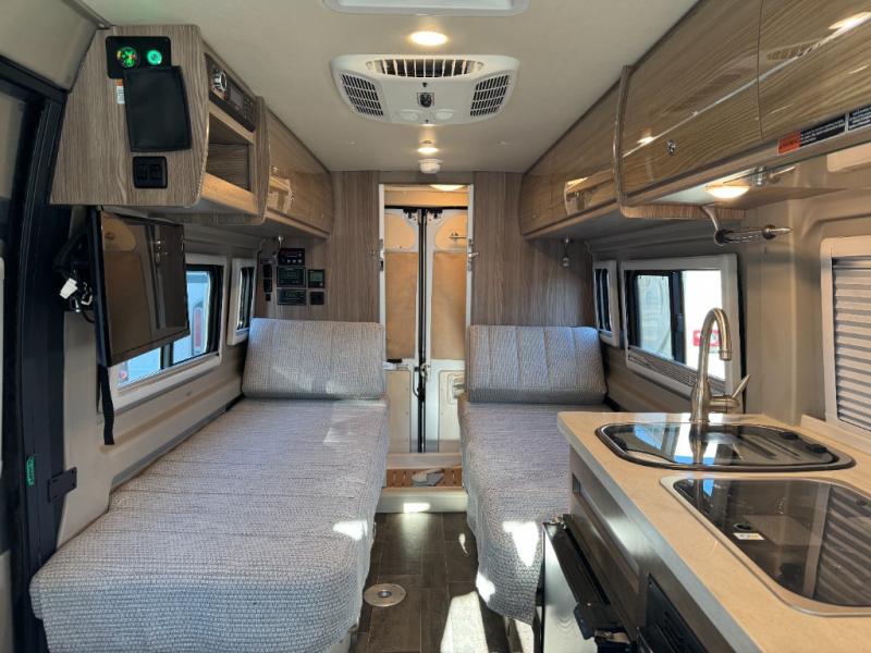 Get ready to go on more road trips and weekend excursions with any Travato class B motor home by Winnebago. You will find that these models feature a Ram ProMaster chassis, and a 280-hp, 3.6L V6 gasoline engine providing power and fuel efficiency. Inside, you will appreciate the Truma Combi Eco-Plus heating system and the Deluxe FROLI sleeping system. Both add comfort to your road trips. The 200-watt solar panels allow you to go off-grid, plus you have the Pure3 Energy Management System providing all the power you need to run appliances and even the AC anywhere you decide to stop for the night without the use of a generator or power hook-ups. What are you waiting for? Come start your next trip with a Winnebago Travato!