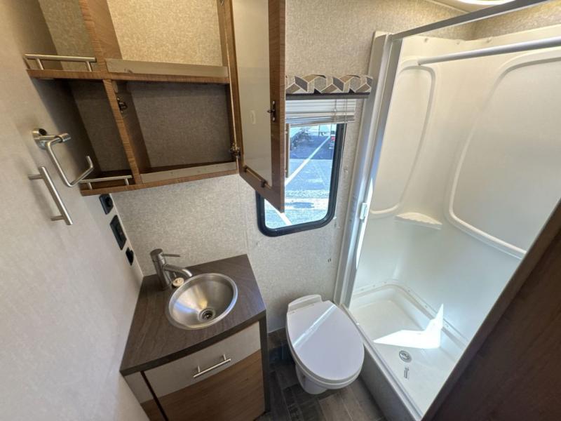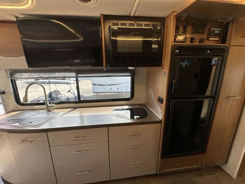 Hit the road knowing that you have all that you need at your fingertips in this Winnebago View Class C Diesel motorhome. Creating meals and snacks will be easy in the kitchen because of the two-burner range and convection microwave oven, and the Norcold double-door refrigerator/freezer will keep all of your perishable items cold and fresh. You will also find a pantry cupboard near the refrigerator for all of your dry and canned goods, and the overhead cabinets keep your daily dishes and kitchen items easily accessible. You will thoroughly enjoy the convenience of having a rear bathroom in this coach, and the Murphy bed will prove to be a huge asset in providing extra sleeping space at night while still keeping the interior free from clutter during the day.