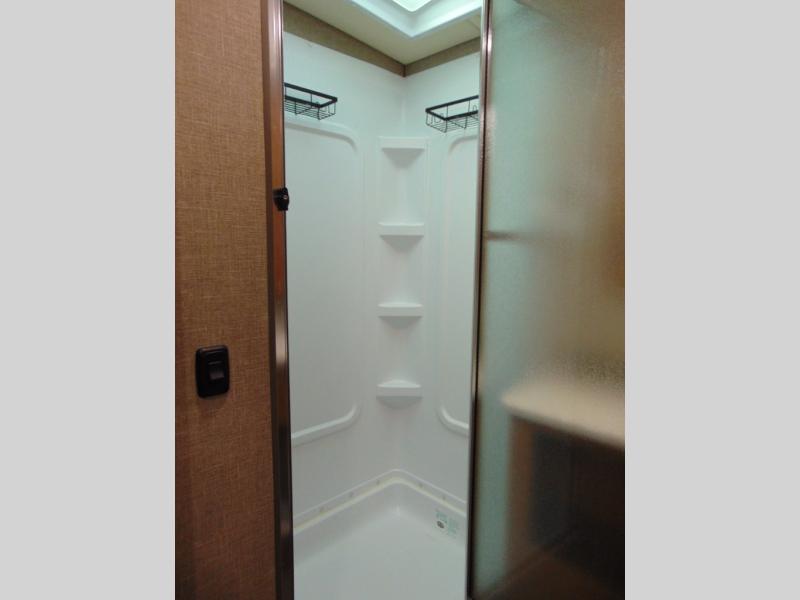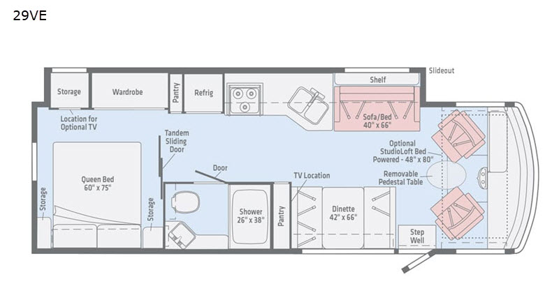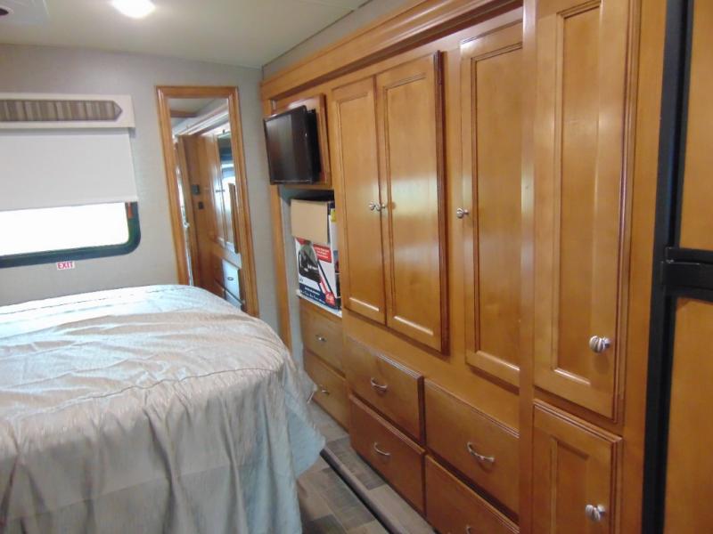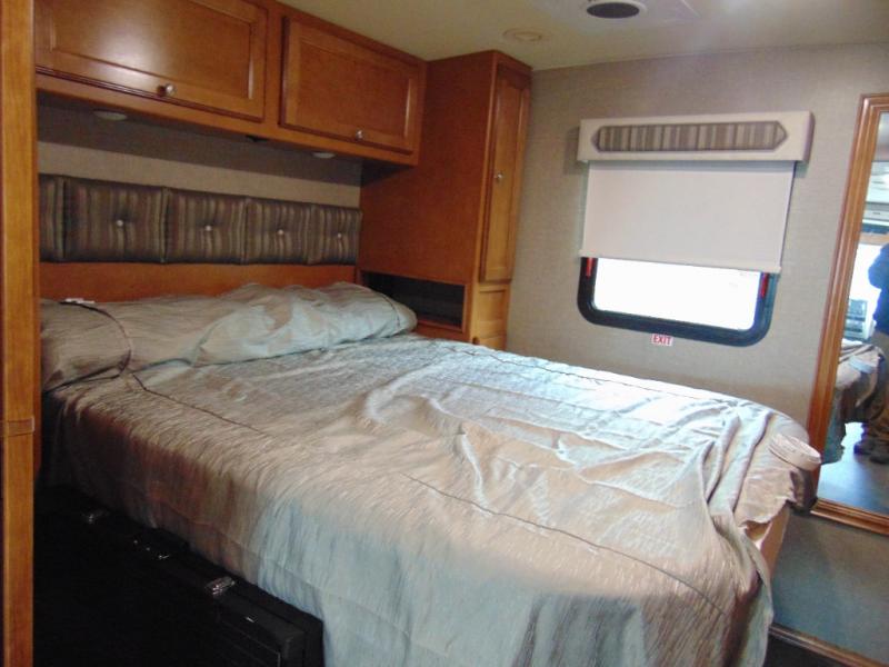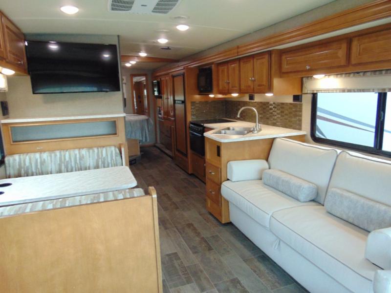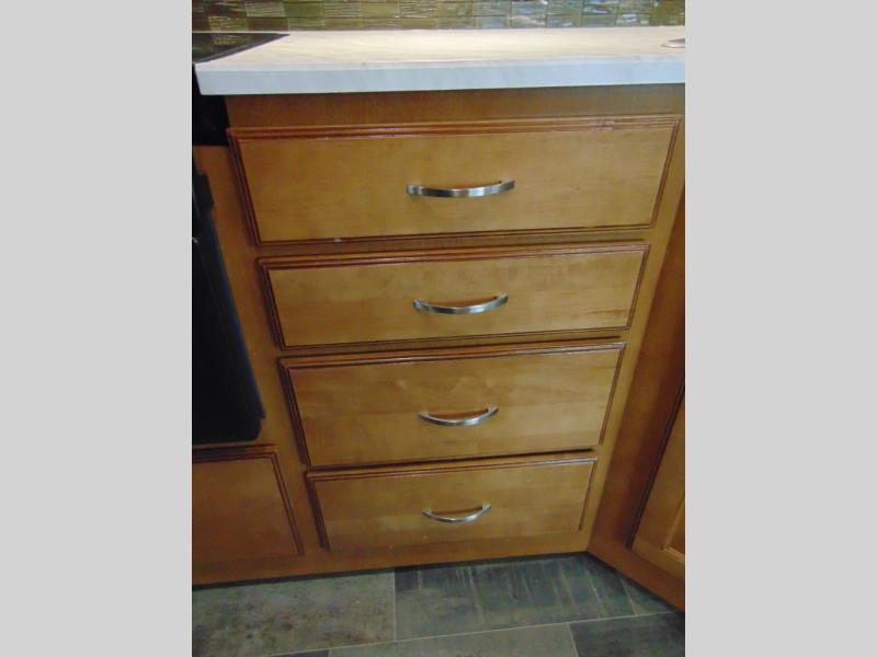 FULL WALL SLIDE--OUTSIDE KITCHEN--FRONT PWR BUNK--REAR QUEEN BEDROOM
