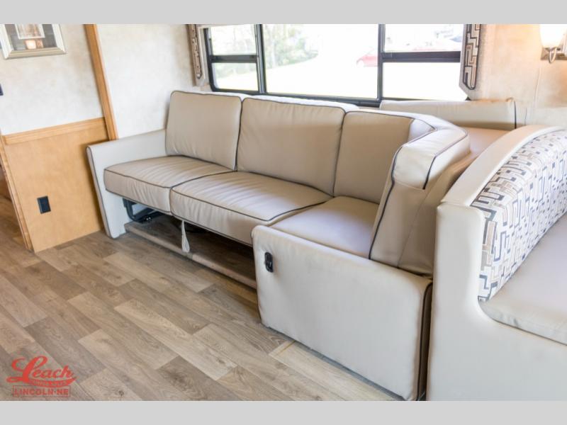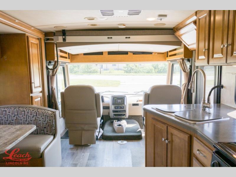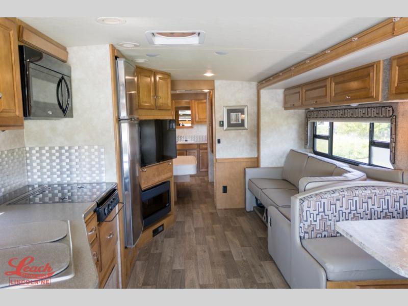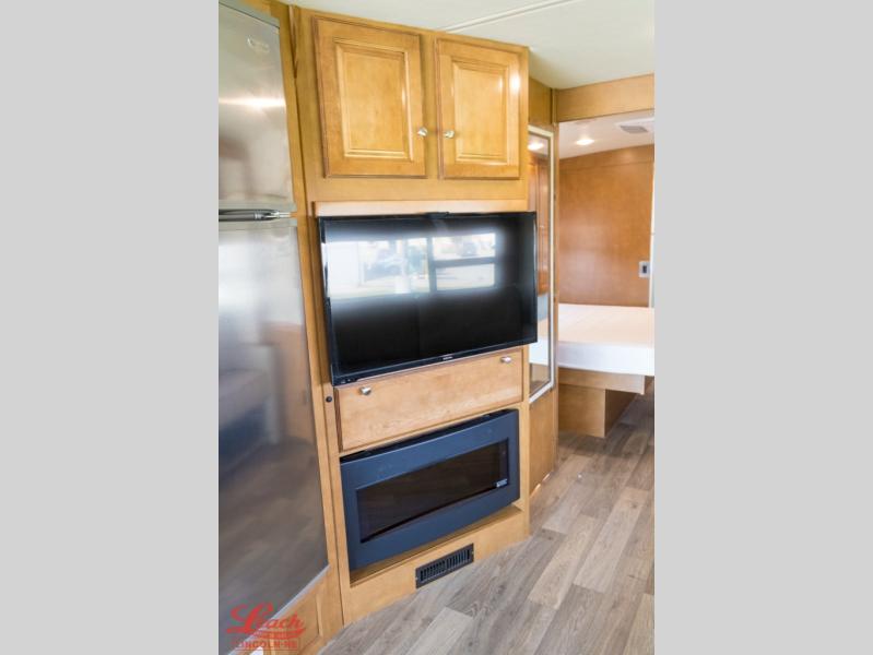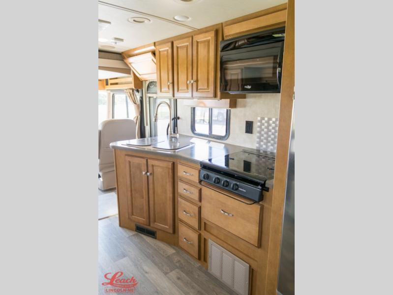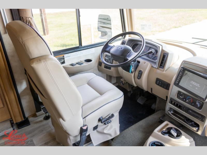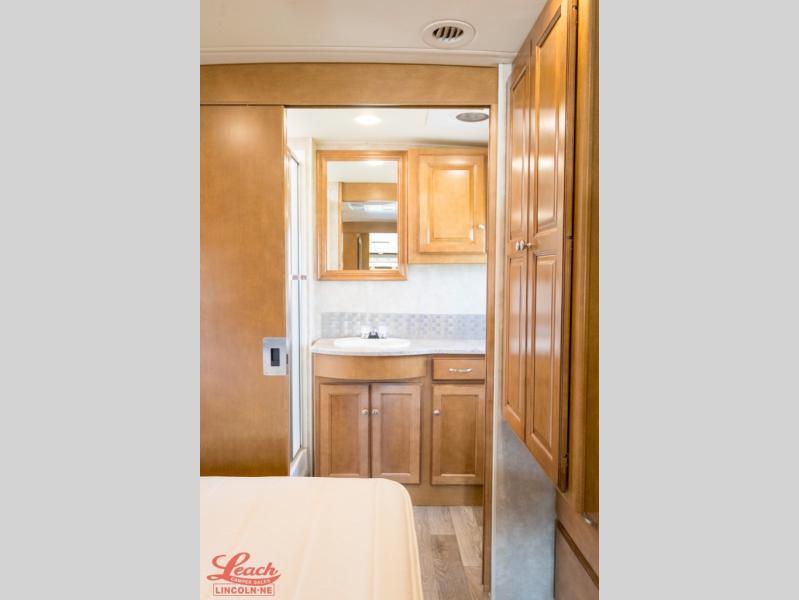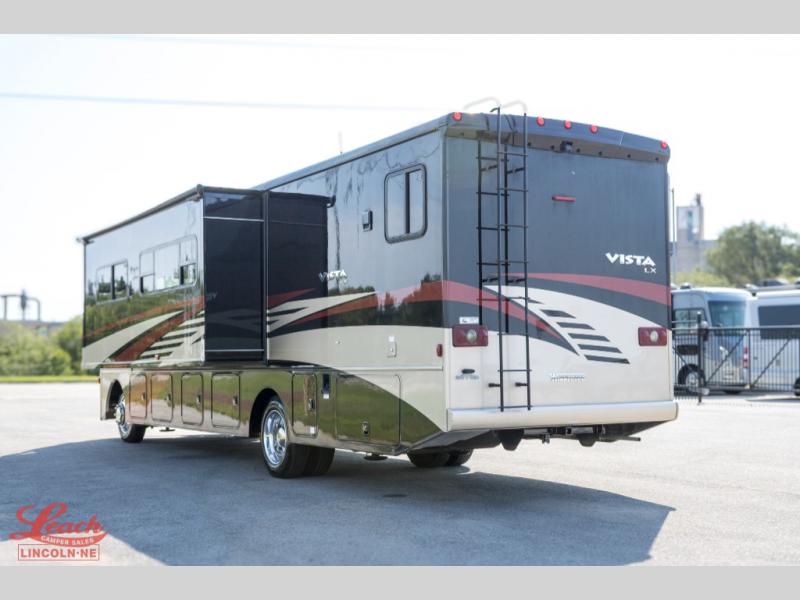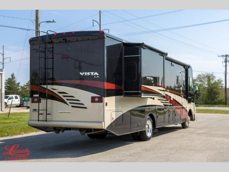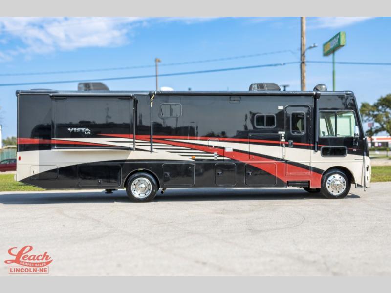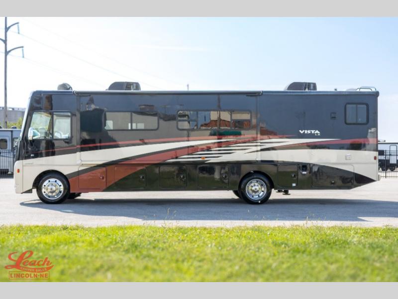 Two slide outs, plus a bath and a half are some of the highlights of this Winnebago Vista LX class A gas coach 35F. The 42" x 70" dinette plus the 48" x 77" extendable sectional sofa are ideal places to visit with your family. Across from the sofa there is a fireplace which will be nice on those chilly evenings! The half bathroom is located mid-coach and the master bathroom is in the rear. With all of the overhead cabinets, the large pantry, and the wardrobes there is plenty of storage for all of your belongings!