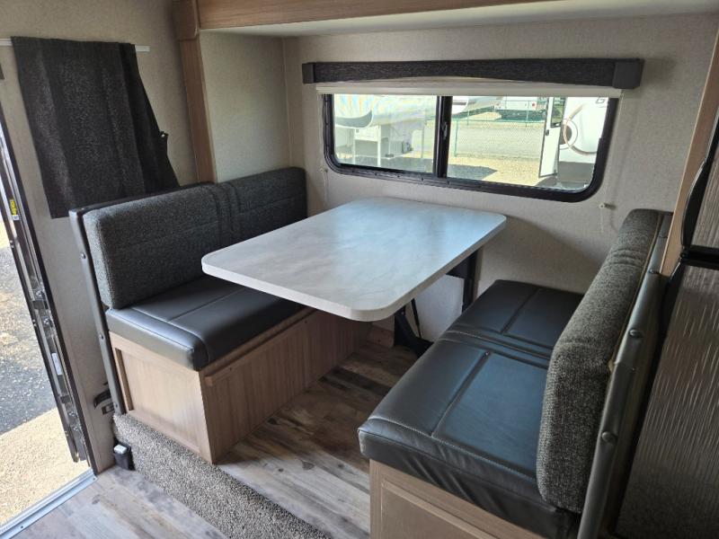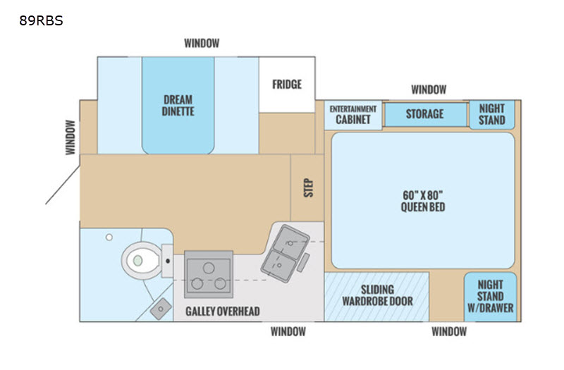 If you are looking for a large fridge, face to face dinette, a large wet bath, and plenty of other amenities in a truck camper then look no further than model 89RBS. Load up and head out into the woods with this four-season truck camper. It not only has beautiful interior decor options to choose from, but also stainless steel appliances. You will love having the single slide out giving you plenty of walking about space especially while the weather is not at its best. You can even sleep up to four individuals when you sleep on the front queen bed and put down the booth dinette for two little ones or an adult.
