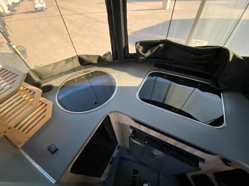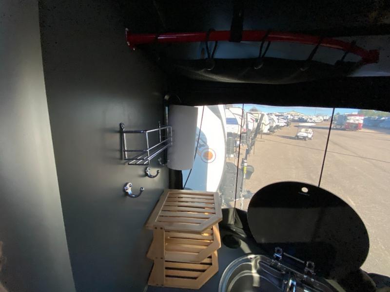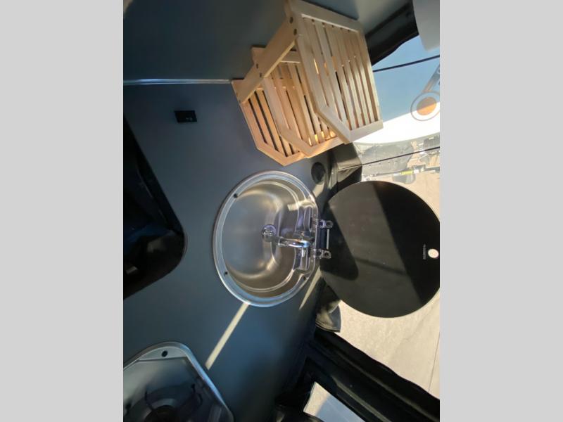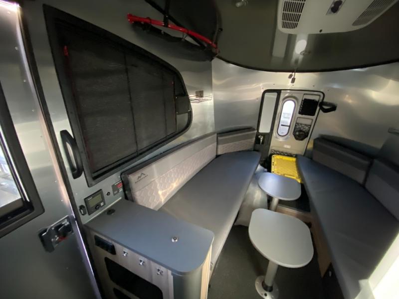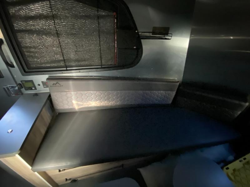 The well-equipped kitchenette, onboard wet bath, and ample storage make extended trips simple and convenient. Large windows and thoughtful design details bring in natural light and create an open, modern feel. Pre-wired for solar and designed with efficient systems, the Basecamp is ready for both campground stays and off-grid exploration.