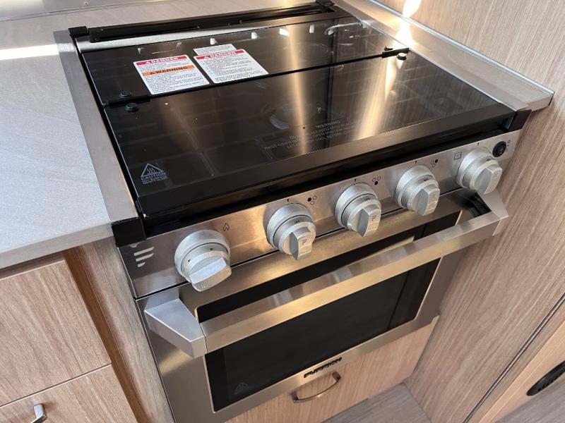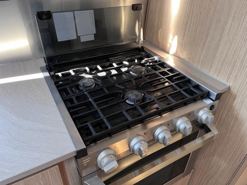 The lightweight and airy Flying Cloud travel trailer by Airstream has a variety of popular floorplans to choose from to fit your family's traveling wants and desires. Beginning with the semi-monocoque aluminum superstructure, the torsion axle suspension, the shock absorber, and the rear view monitoring system, you will enjoy a smooth tow and easy parking. The panoramic windows offer amazing views and natural lighting, and at night you can close the Oceanair roller blinds, and blackout curtains in the front and back for complete privacy. The enclosed aluminum insulated heated underbelly and the Quietstream ducted Climate control system allow you to camp in all types of weather. If you are searching for a dreamy vibe, and an RV with modern technology, lots of storage, and versatile sleeping space, choose a Flying Cloud and drift away!
