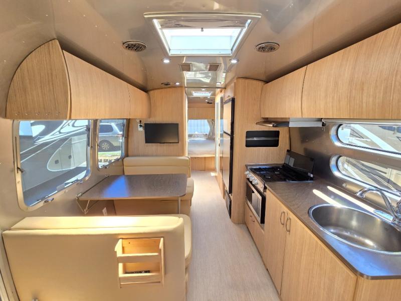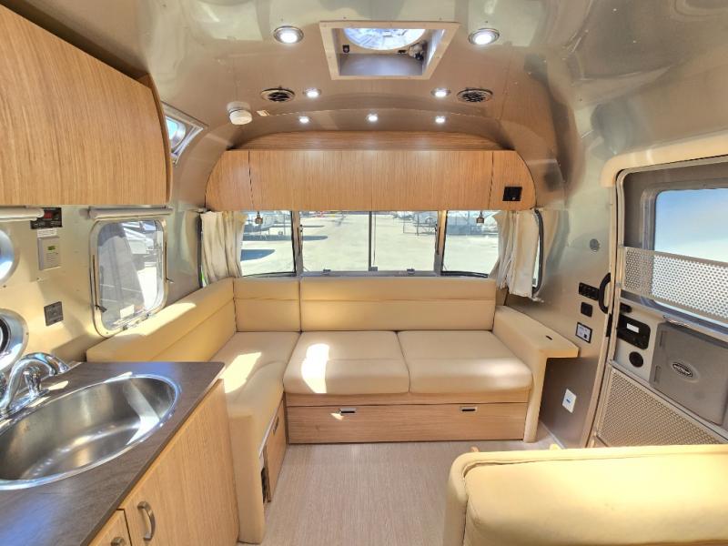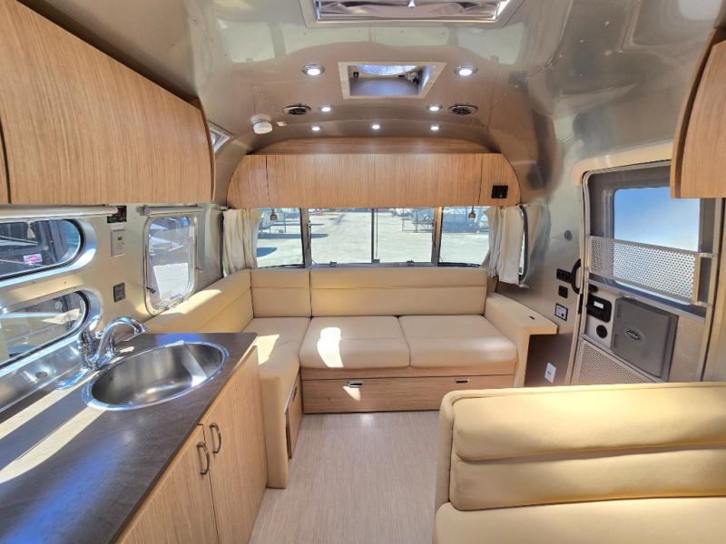 The lightweight and airy Flying Cloud travel trailer by Airstream has a variety of popular floorplans to choose from to fit your family's traveling wants and desires. Beginning with the semi-monocoque aluminum superstructure, the torsion axle suspension, the shock absorber, and the rear view monitoring system, you will enjoy a smooth tow and easy parking. The panoramic windows offer amazing views and natural lighting, and at night you can close the Oceanair roller blinds, and blackout curtains in the front and back for complete privacy. The enclosed aluminum insulated heated underbelly and the Quietstream ducted climate control system allow you to camp in all types of weather. If you are searching for a dreamy vibe, and an RV with modern technology, lots of storage, and versatile sleeping space, choose a Flying Cloud and drift away!